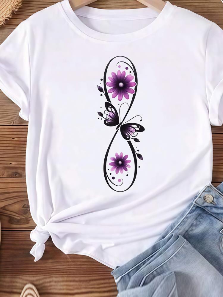 (Азиатский размер) любовь сердце бабочка тренд Женская футболка Топ Одежда Повседневная футболка Мода Принт Леди Женская Графическая Футболки с коротким рукавом