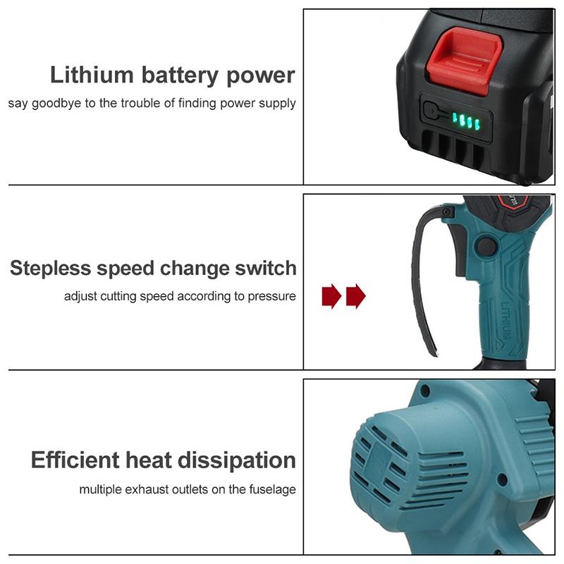 -Бесступенчатая регулировка скорости, более детальная обрезка, лучшая защита деревьев.