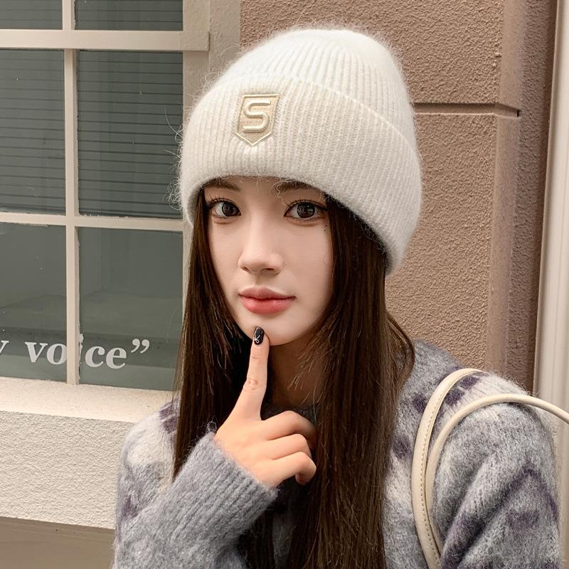 Новая шапка для женщин Новая зимняя теплая шапка из кроличьего пуха с вышивкой Модная универсальная вязаная шерстяная шапка Тренд
