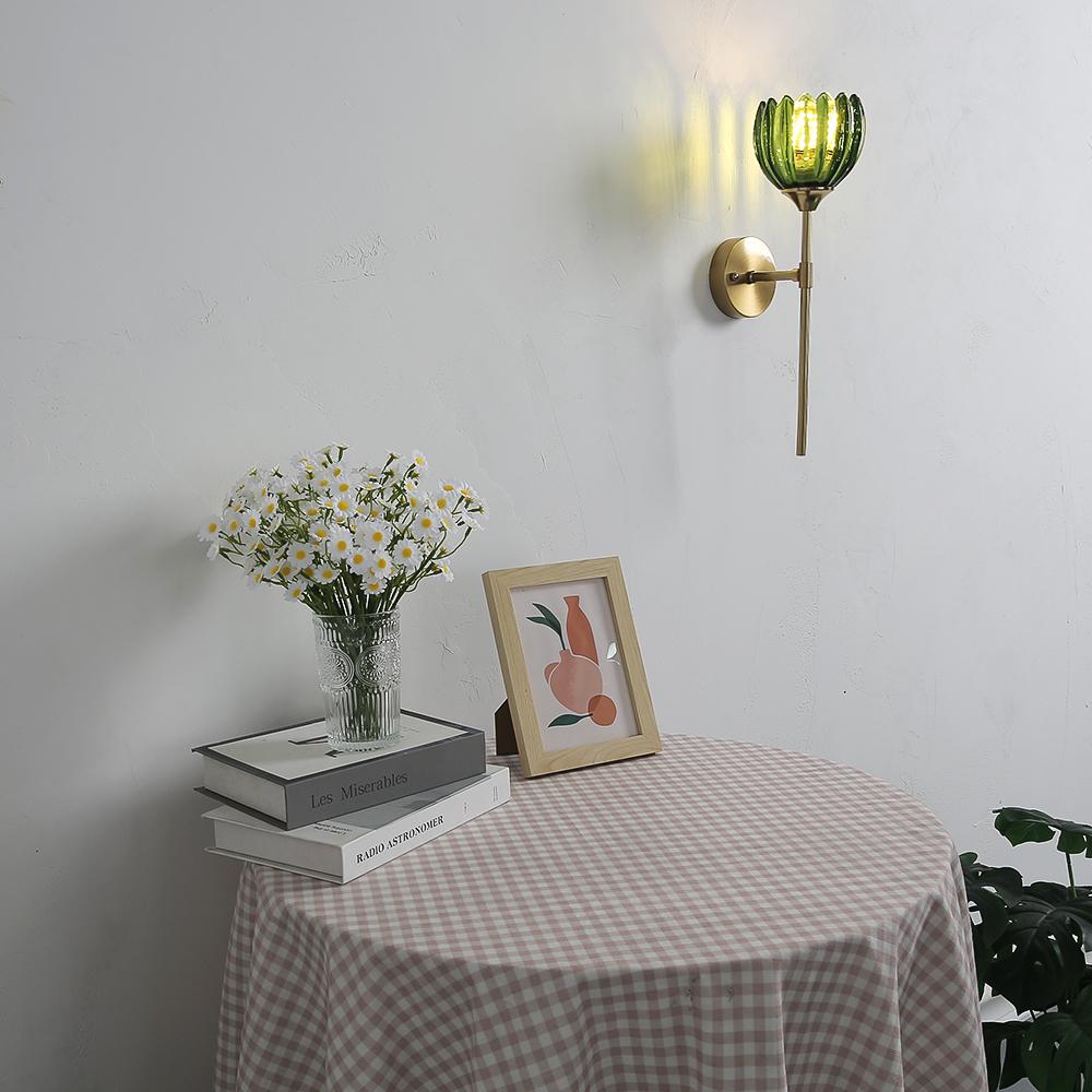 Современный цветной стеклянный светодиодный настенный светильник, светильники для спальни, скандинавский настенный светильник с цветами для гостиной, столовой, прикроватное бра, домашний декор