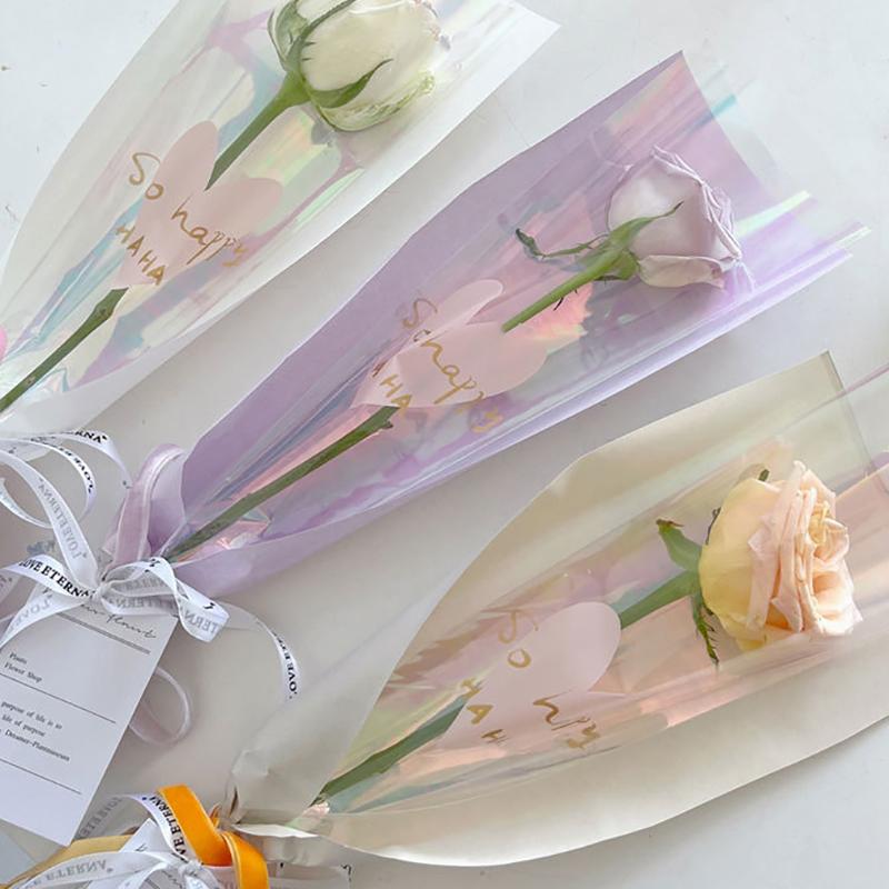 10 шт., упаковочная сумка для цветов с одними розовыми рукавами, упаковочные пакеты для букетов, прозрачные целлофановые обертки с цветами на День святого Валентина