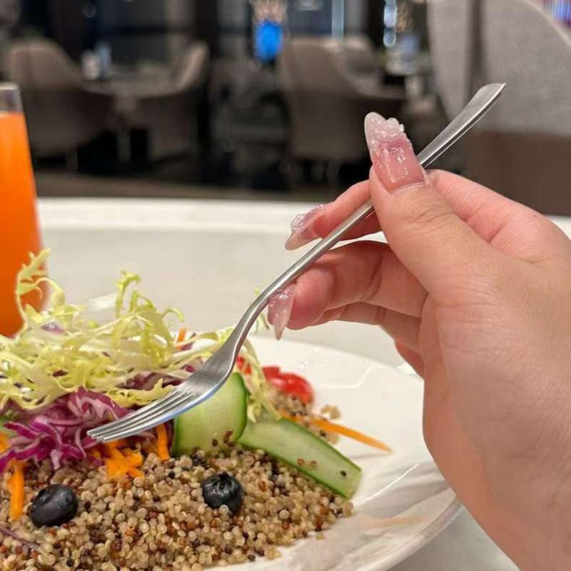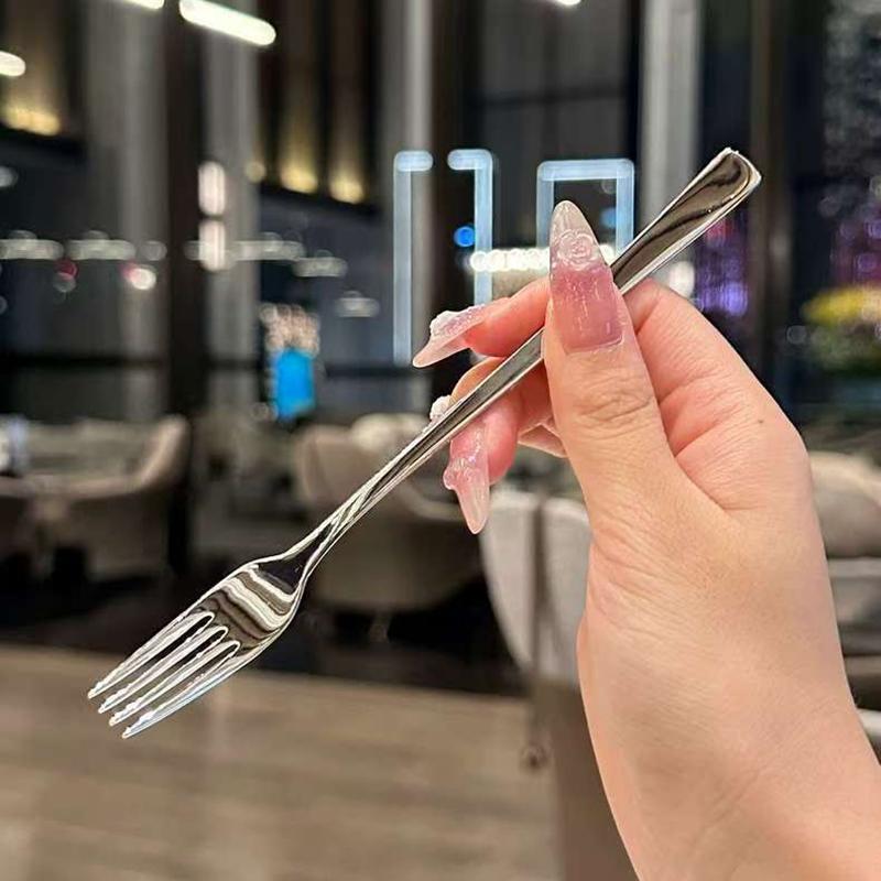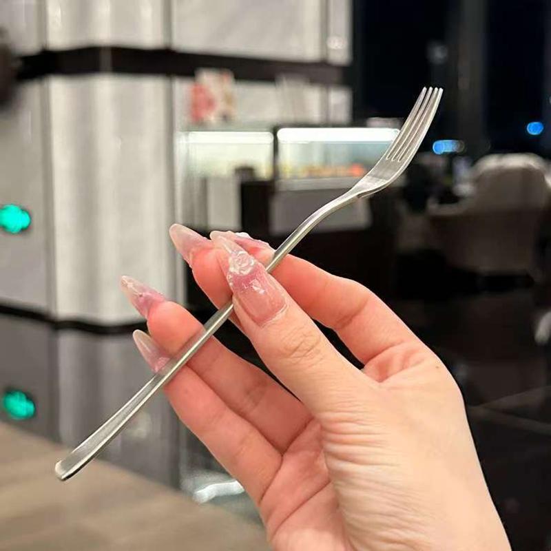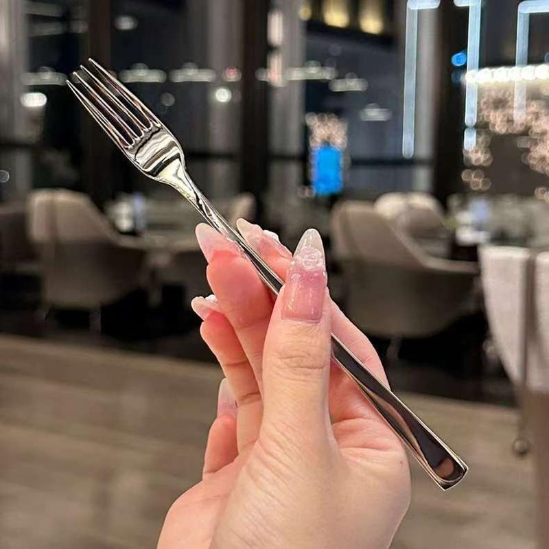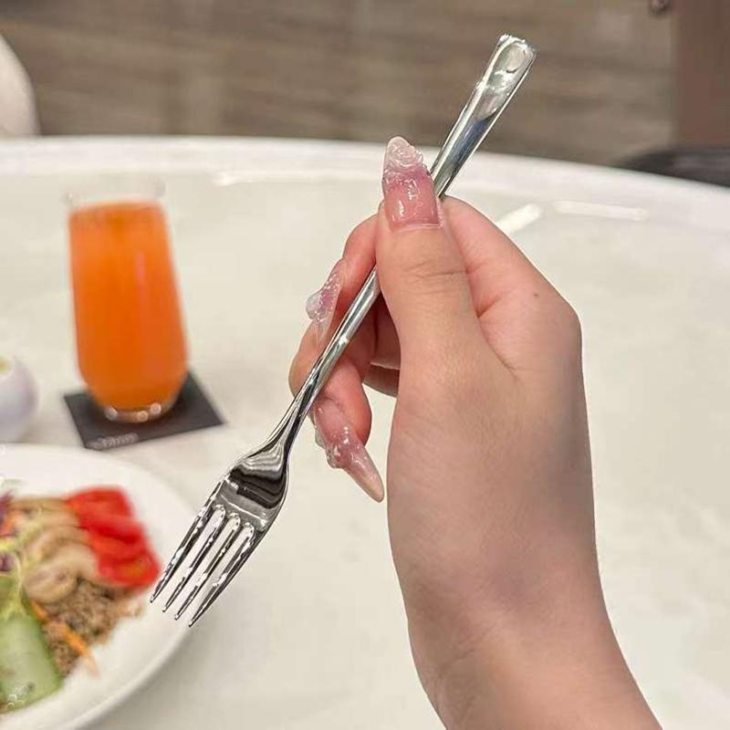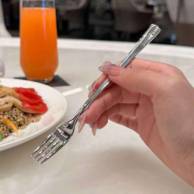Обеденная вилка из нержавеющей стали с длинной ручкой, набор столовых вилок, корейские столовые приборы, четыре зубца, вилки для салата, десерта, фруктов, кухни