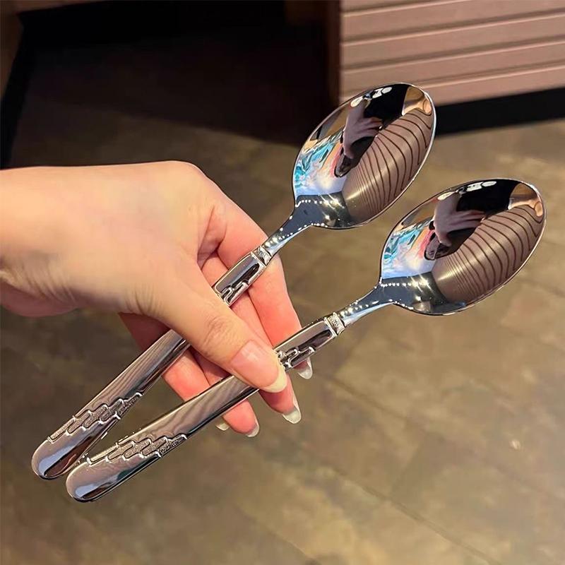 Круглая ложка из нержавеющей стали, сетка, красная, золотистая, для ужина, с длинной ручкой, десертные ложки для перемешивания, кухонные аксессуары, гаджеты