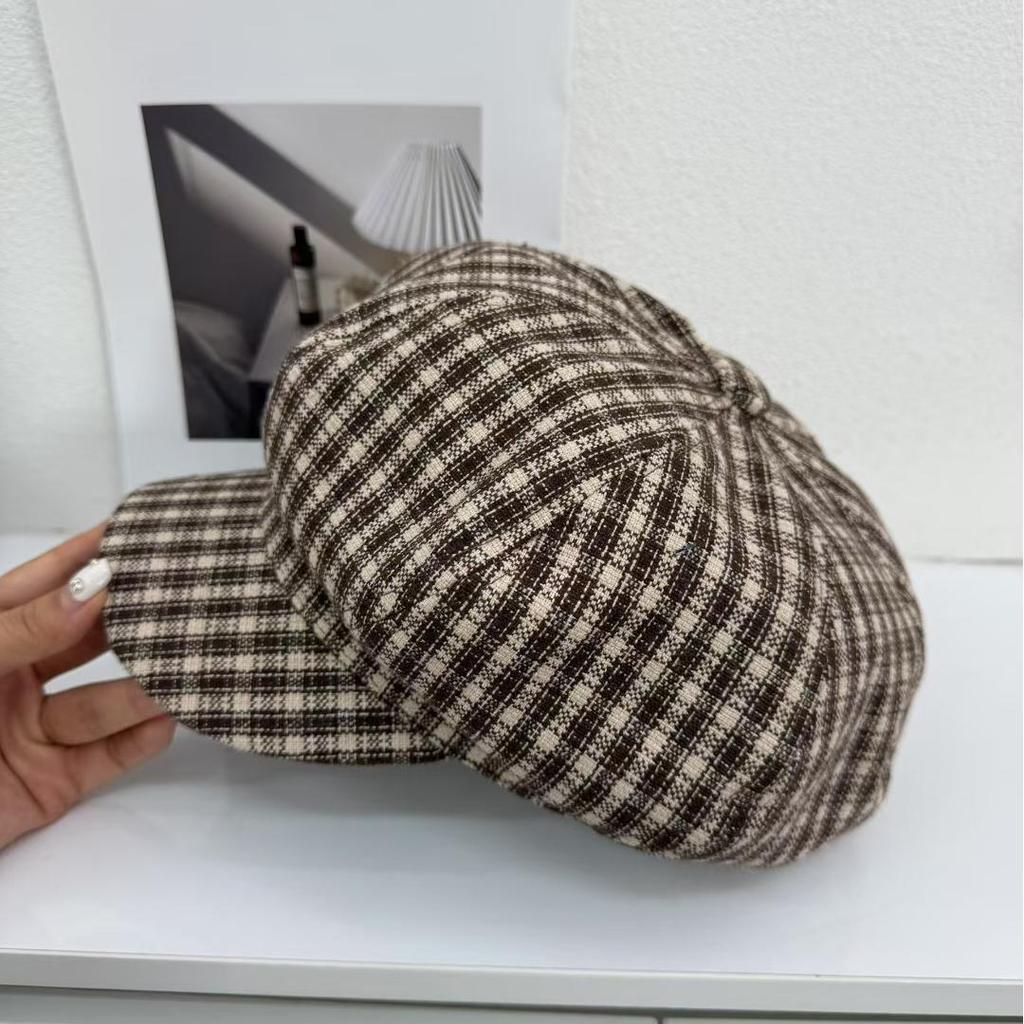 Осень и Зима Повседневный Универсальный Клетчатый Берет в Шахматную Клетку Корейский Ветрозащитный Маленькая Восьмиугольная Шляпа Британская Ретро Шляпа Художника