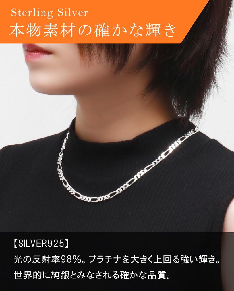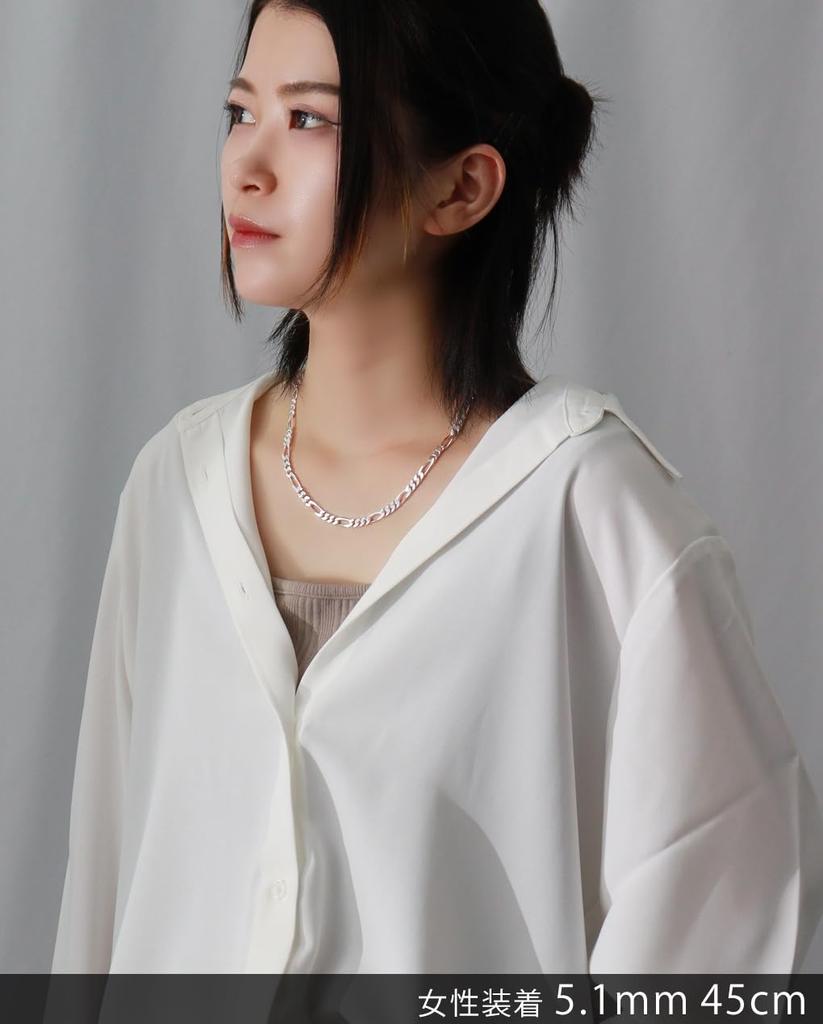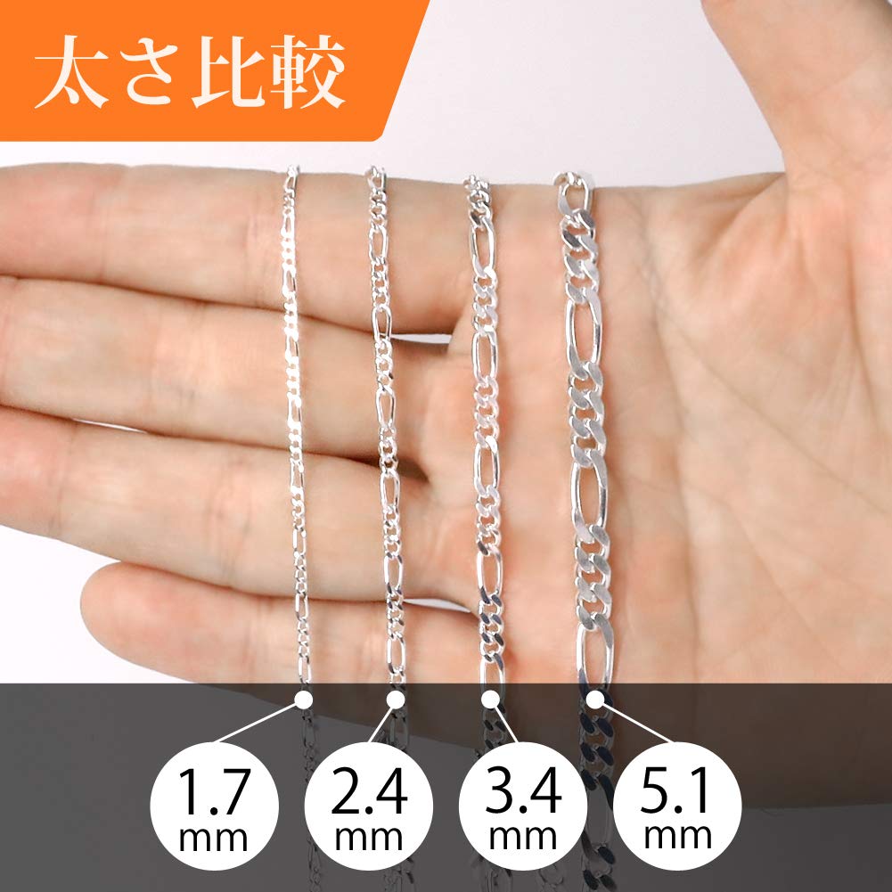 Серебряное колье-цепочка Фигаро 925 пробы для мужчин и просто цепочка [Синдзюку Кура] Цепочка, прибл.. 5,1 мм шириной, 45-60 см (60см), Женщины, Простой,