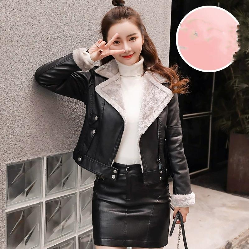 Плюшевые лацканы Искусственная Искусственная кожа Куртка для женщин Кожаная куртка Весна Осень Приталенный Кардиган Пальто Верхняя одежда Женская Короткая куртка