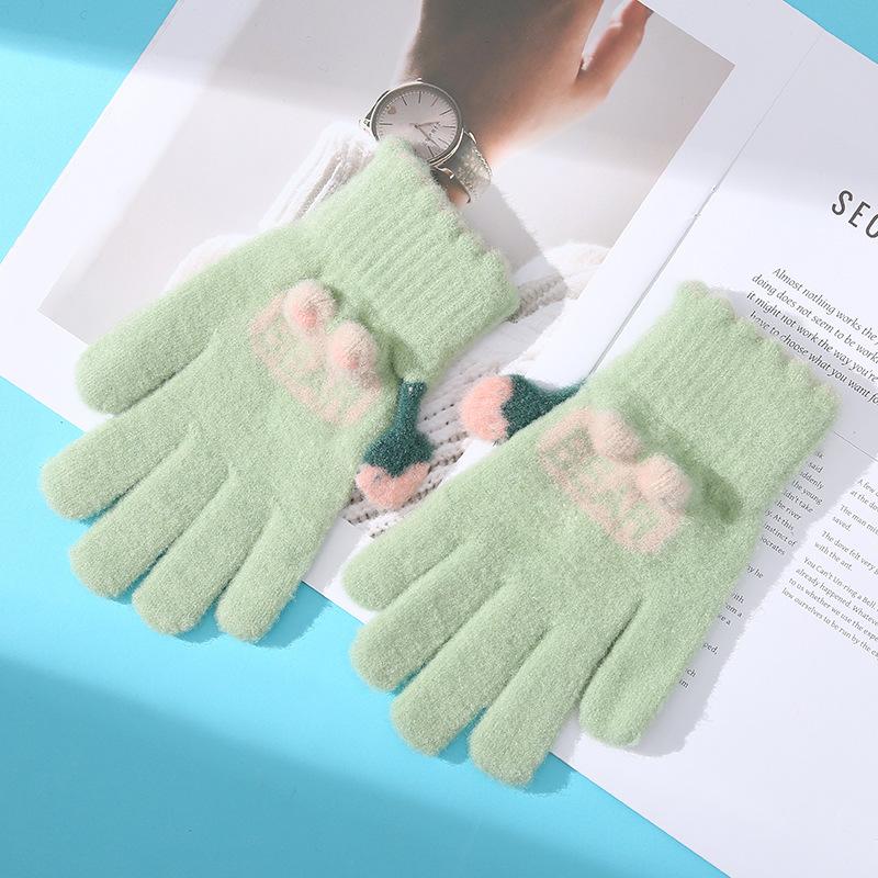 Новые милые перчатки с сенсорным экраном на пять пальцев для женщин на осень и зиму, вязаные, утолщенные, бархатные, сохраняющие тепло и пальцы при езде для защиты от холода