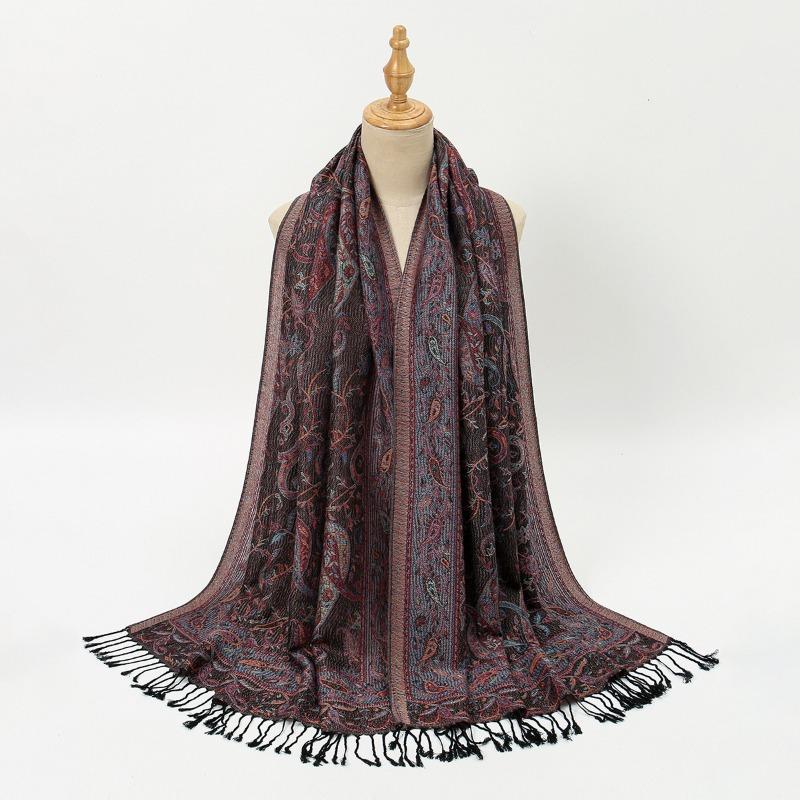 Модный жаккардовый полиэстеровый длинный шарф с бахромой 'Кэшью' - Универсальный женский верхний теплый дорожный платок-шаль