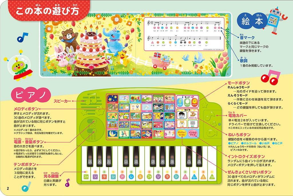 ・Режим практики: Нажатие на подсвеченные клавиши обеспечивает аккомпанемент, поэтому даже дети, которые еще не умеют играть на пианино, и их родители могут наслаждаться игрой в своем собственном темпе.