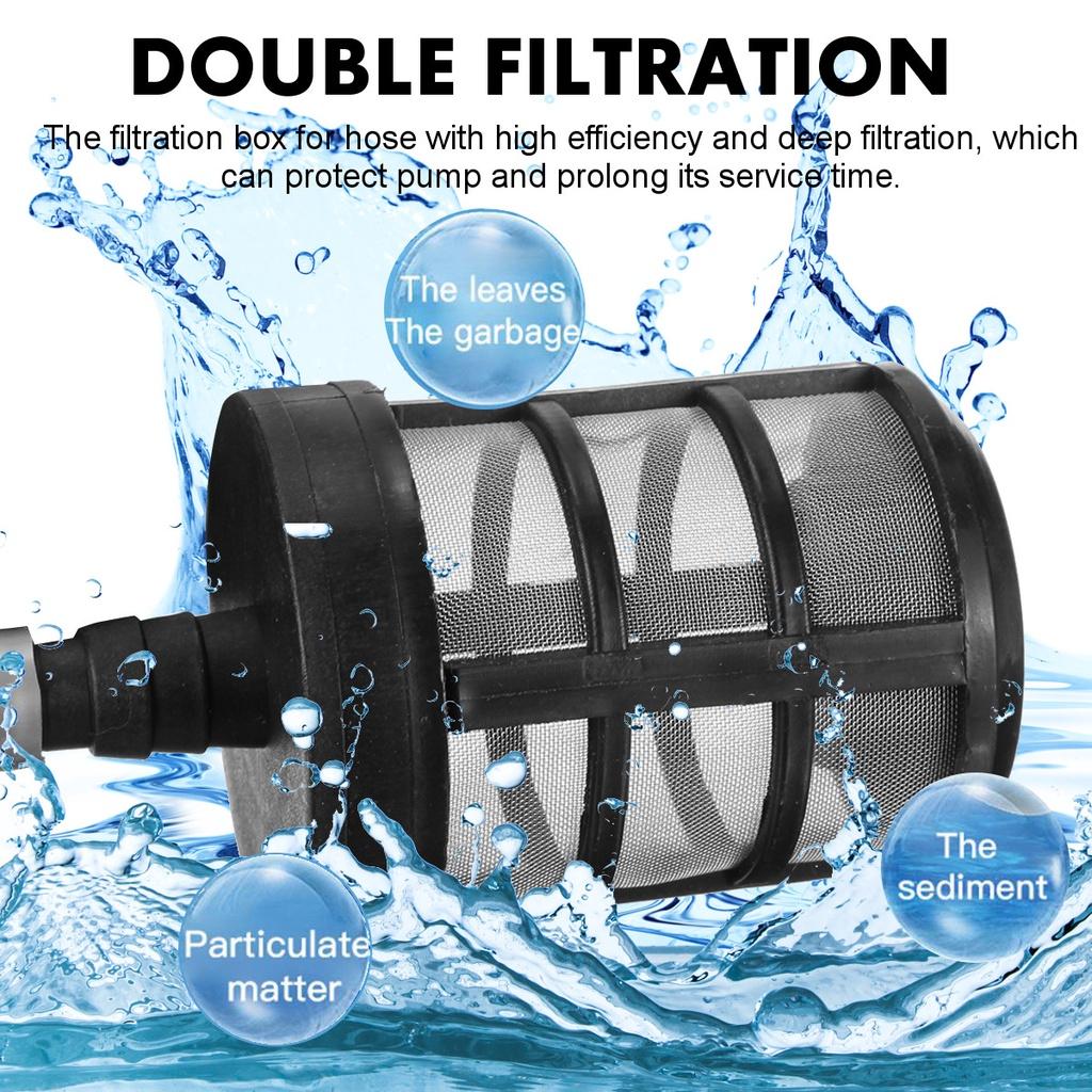 【Различные методы водоснабжения】Прикрепляет мойку высокого давления к фильтрационному шлангу, вы можете черпать воду из любого места, источника воды, такого как бассейн, озеро или ведро. Вы можете подключиться к садовой шлангу в доме или даже к бутылке на ходу. Фильтрационная коробка для шланга с высокой эффективностью и глубокой фильтрацией, которая может защитить насос и продлить время его обслуживания. Вы можете очистить везде, где есть вода.