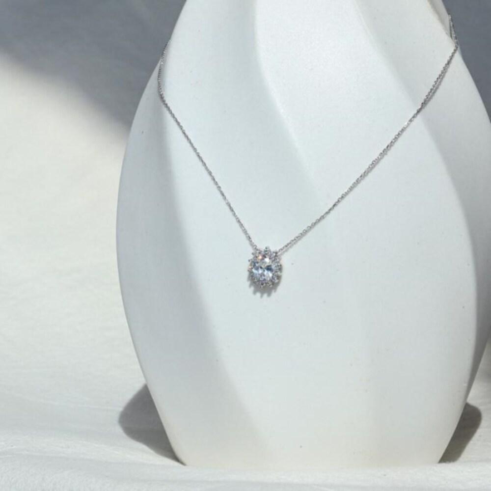 [Onoma] Onm 92.5 Silver Simulant Diamond Sunflower Pendant Necklace Ss472N (15414512)