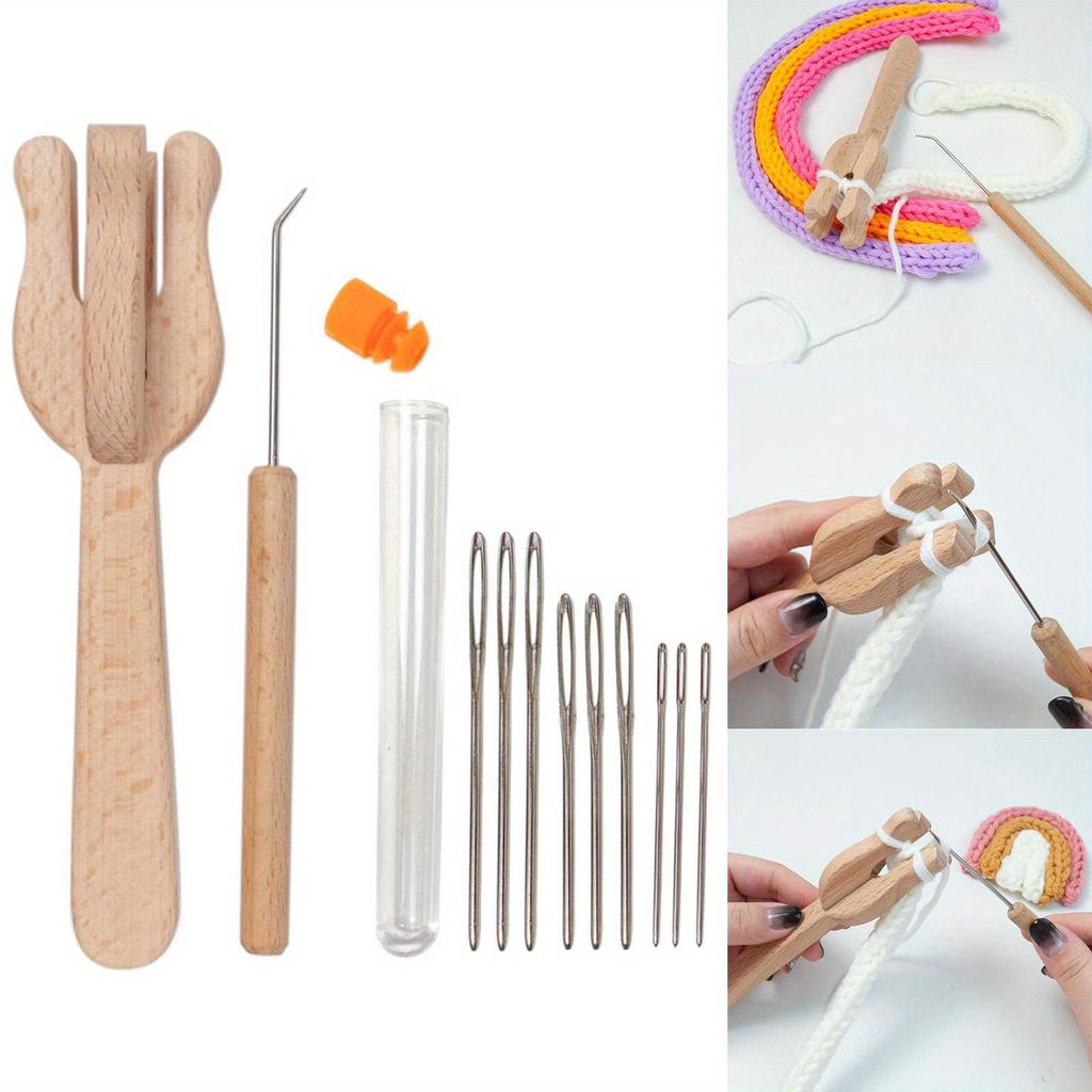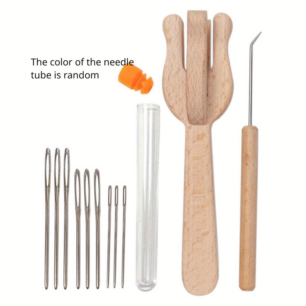 Вилка для вязания, ручка и набор из 9 больших глазков Вязание Вязальщицы Украшения для глаз Деревянная вилка Ткач Набор спиц для вязания
