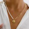 [Онома] Ожерелье-кольцо с многослойной монетой из жемчуга Онм, хирургическая сталь (9594494)