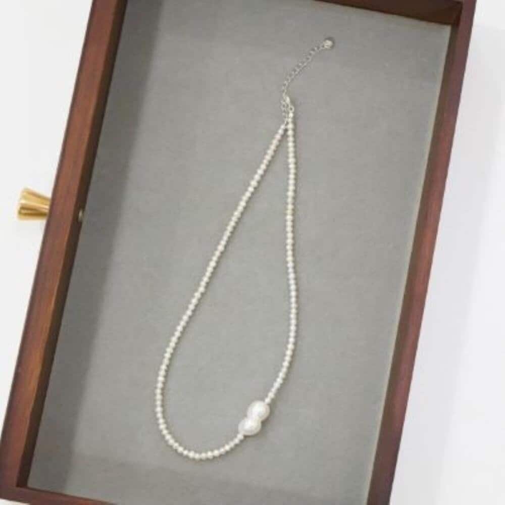 [Osjarak] Женское Классическое Серебряное 925 Пробы Ожерелье с Неровным Жемчугом и Серебряной Точкой