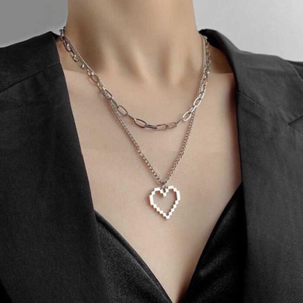 [S] Mosaic Heart Chain Fashion Necklace_Ih