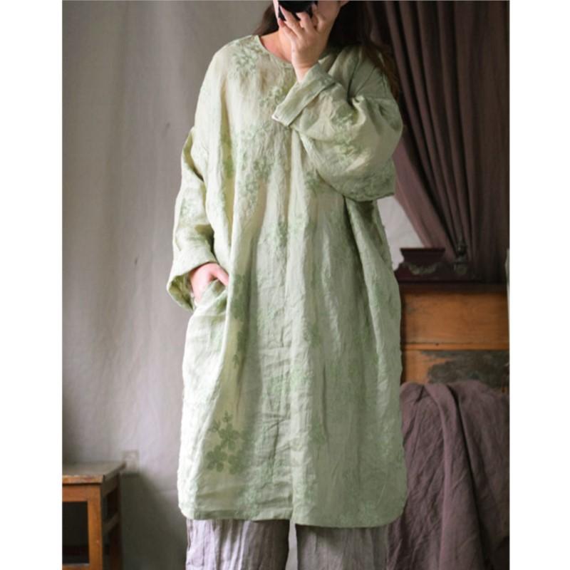 Johnature Women Vintage Jacquard Dress Solid Color O-Neck Long Sleeve Spring Chinese Style High Quality Dress — купить товар онлайн с бесплатной доставкой по всему миру!