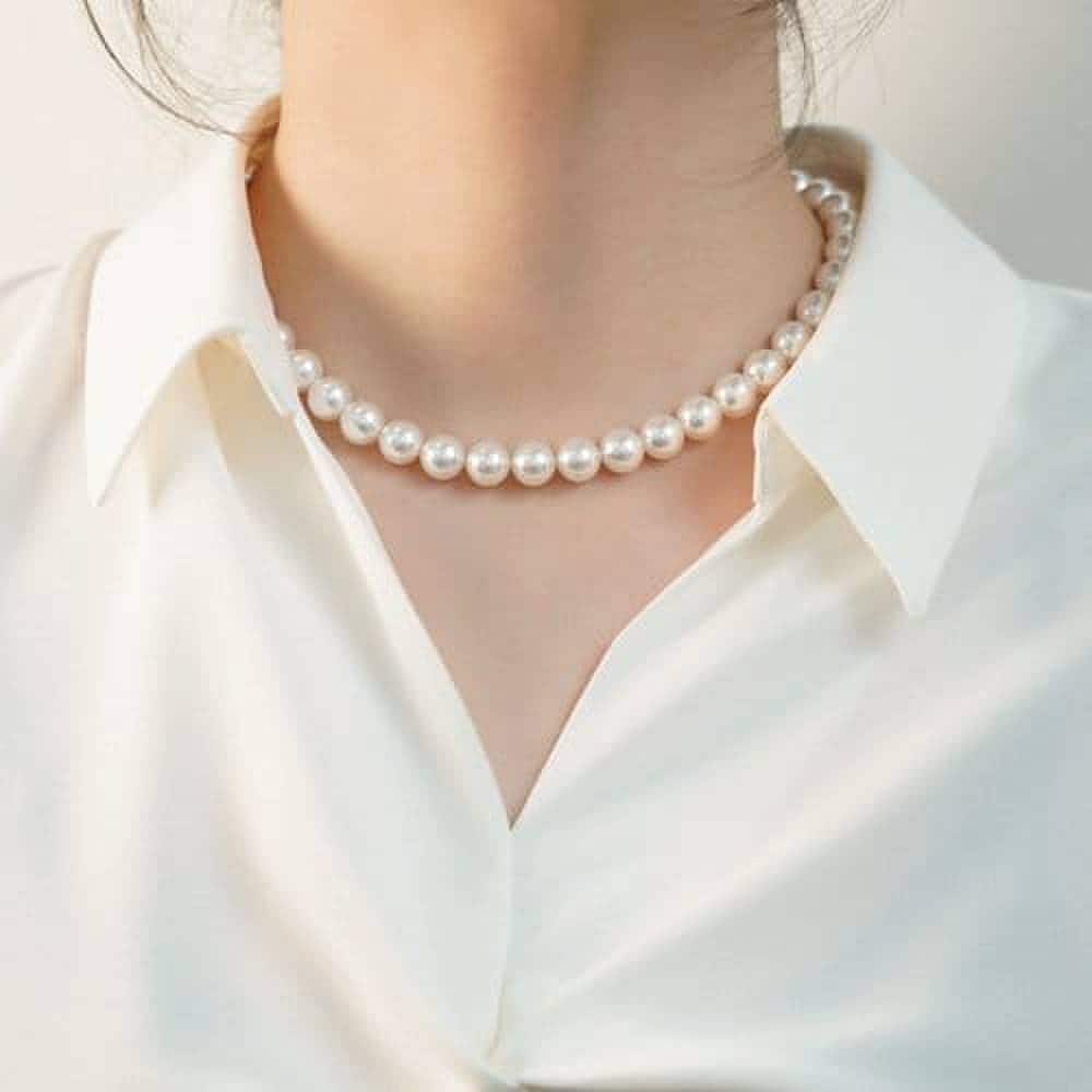 Pearl Necklace Silver 925 Choker 10mm — купить товар онлайн с бесплатной доставкой по всему миру!
