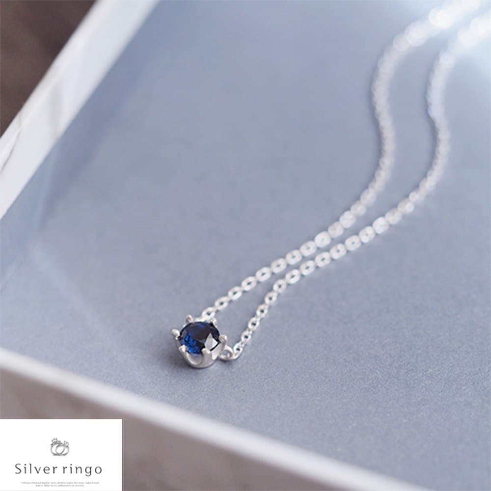 Серебряное колье 925 пробы с сентябрьским камнем сапфиром-солитером — купить товар онлайн с бесплатной доставкой по всему миру!