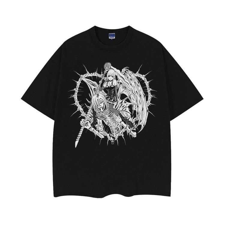 Тетрадь смерти Mihaisha Футболка с коротким рукавом Хлопок Принт Свободная Ретро Американский Тренд Бренд Мужская и Женская Универсальная
