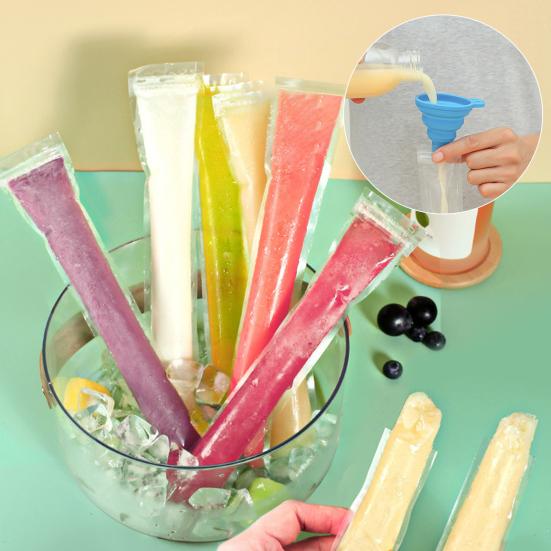 Идеальные для различных случаев, эти универсальные пакеты отлично подходят для приготовления фруктового льда, смузи, желе, сока, йогурта и многого другого.. Будь то для домашнего использования, вечеринок, пикников, кемпинга или детских праздников, эти пакеты для заморозки — незаменимая вещь для всех, кто любит домашние замороженные лакомства.. Проявите креативность и наслаждайтесь вкусными угощениями в любое время с этими красочными пакетами для эскимо и воронками!
