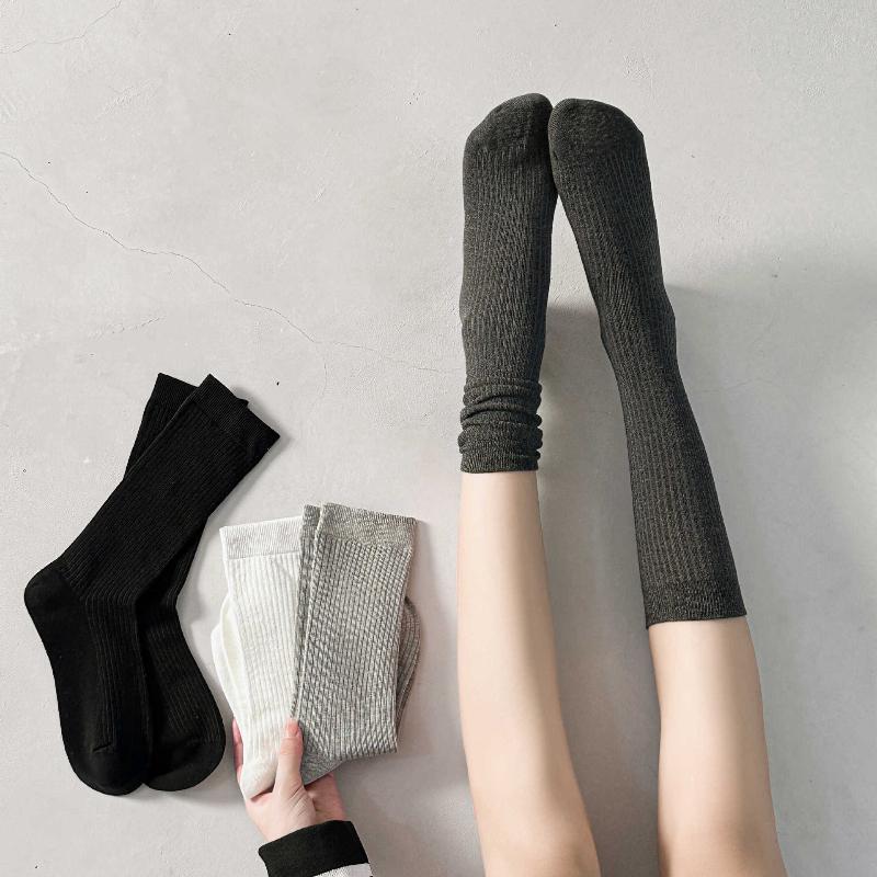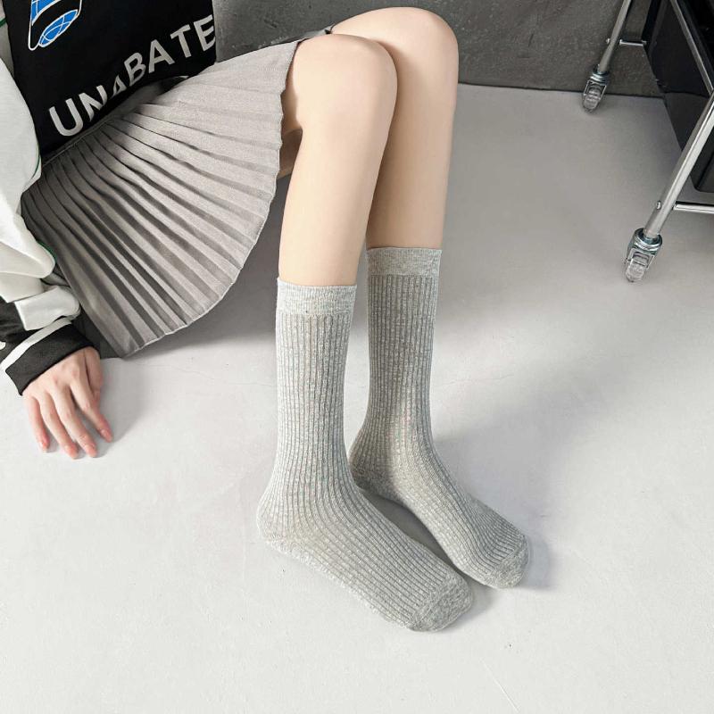 Женские осенне-зимние гольфы в красную ангору в вертикальную полоску, бесшовные хлопковые носки до середины икры