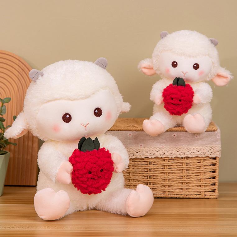 Милая кукла-ягненок Овечка Ягода Выдыхающая кукла Дракон Плюшевая игрушка Красная Клубничка Овечка Креативная кукла