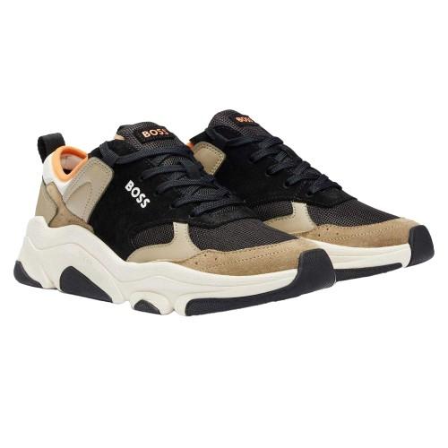 Hugo Boss Mens Asher Leather Running Trainers — купить товар онлайн с бесплатной доставкой по всему миру!