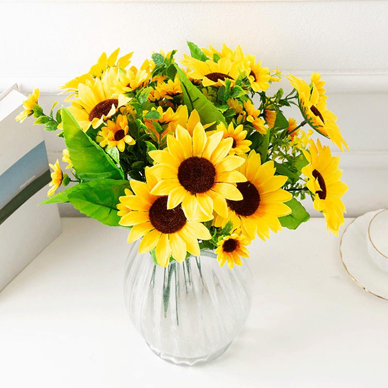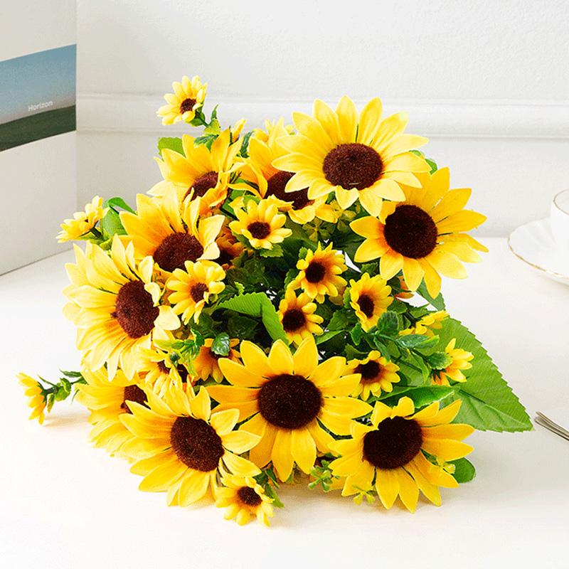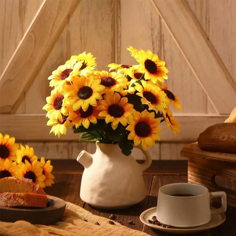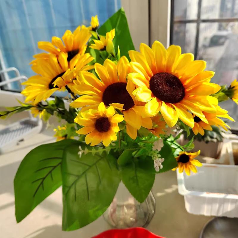 Реалистичный внешний вид: Изготовленный из высококачественного искусственного шелка, этот искусственный подсолнух отличается реалистичным и ярким видом, идеально подходящим для украшения любого пространства с оттенком природной красоты.