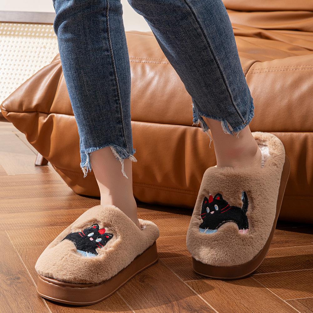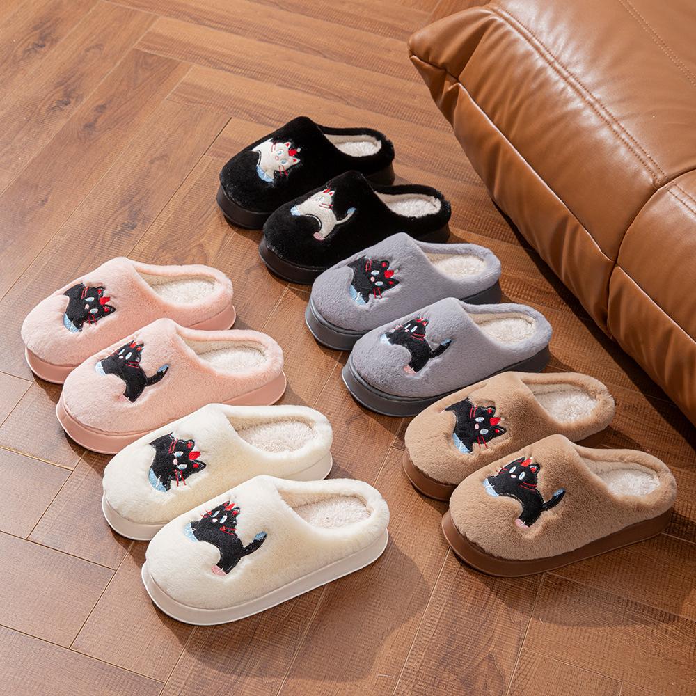 Женские мультяшные кошачьи зимние теплые домашние тапочки из хлопка