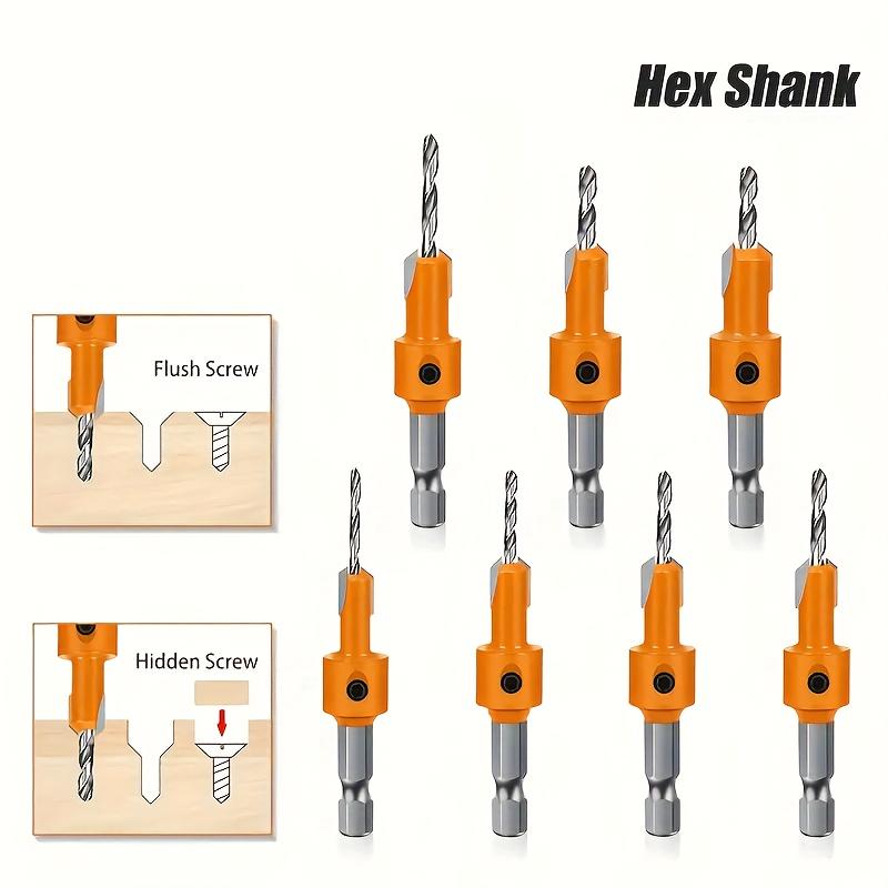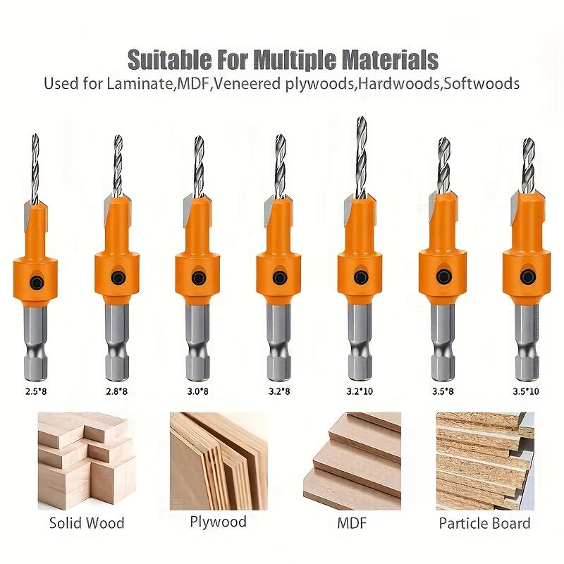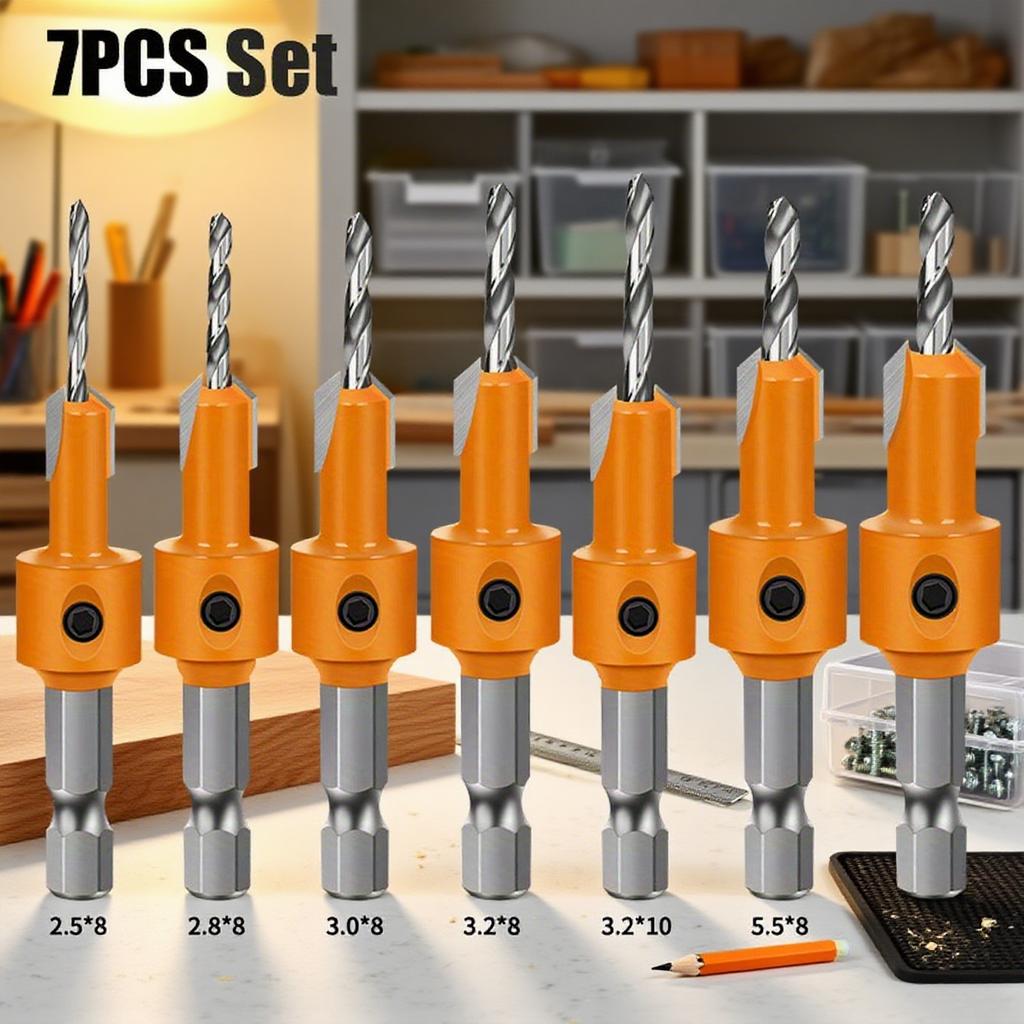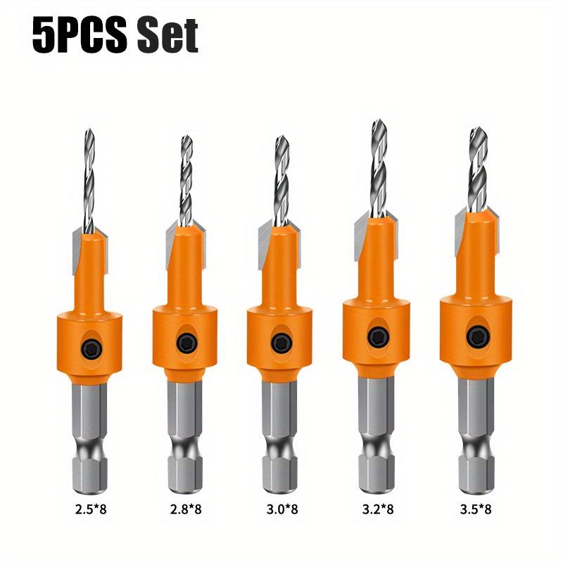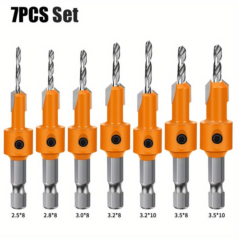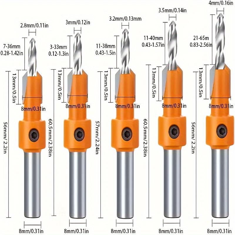 Набор зенковочных сверл 5/7 шт., круглый хвостовик 8 мм, конические размеры 2,8-4,0 мм для деревообработки, инструменты для винтов, сверления отверстий и зенковки