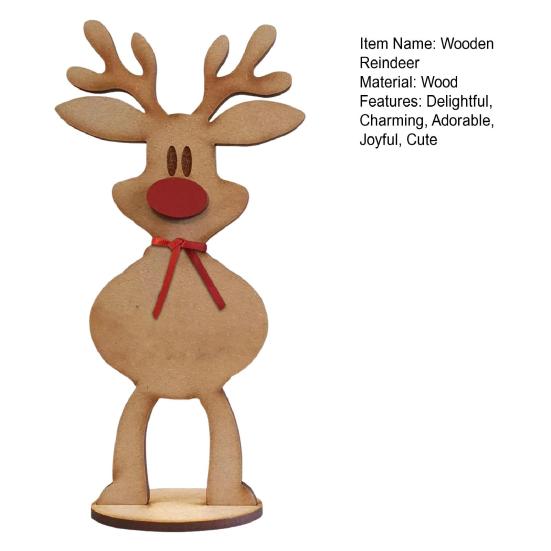 Праздничный декор с оленями: Изготовленное из высококачественной древесноволокнистой плиты средней плотности, это отдельно стоящее украшение в виде оленя отличается изысканным исполнением без заусенцев, что обеспечивает долговечность и возможность повторного использования для длительного праздничного очарования.