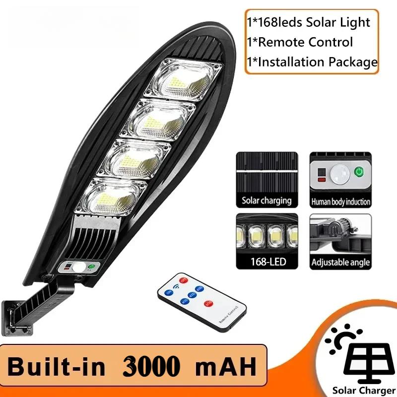 Светодиодный солнечный уличный фонарь Супер яркий Наружный Водонепроницаемый 168LED Лампа Датчик движения 3 режима освещения Пульт дистанционного управления Для сада Гард