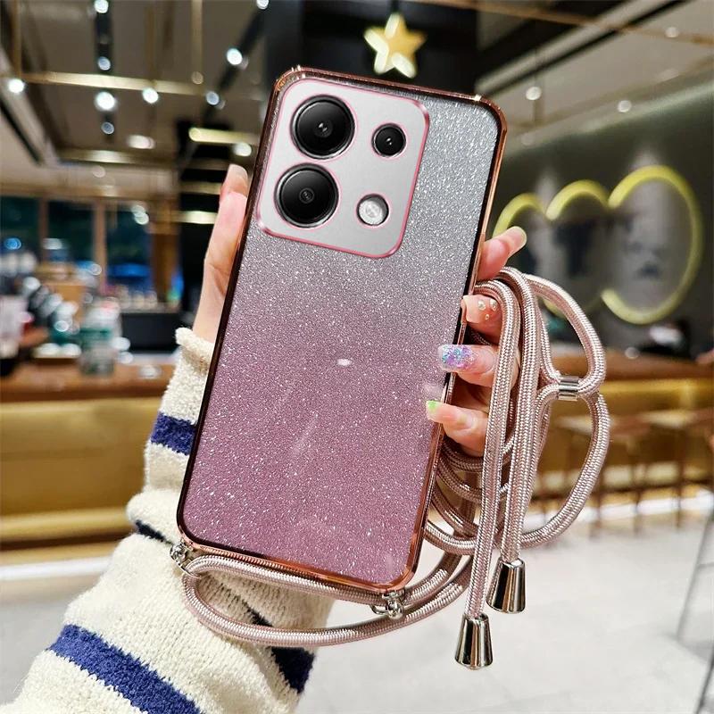 Чехол-ожерелье с градиентным блеском и ремешком для Xiaomi Redmi Note 13 12 Pro Plus 11 10 9 8 Pro 12S 11S 10S 9S