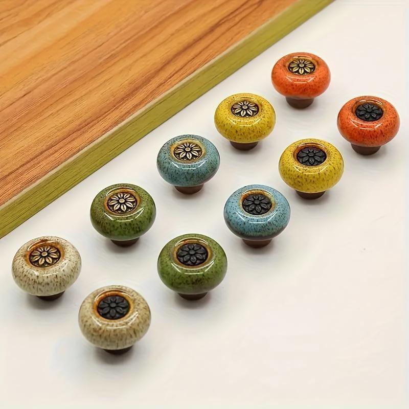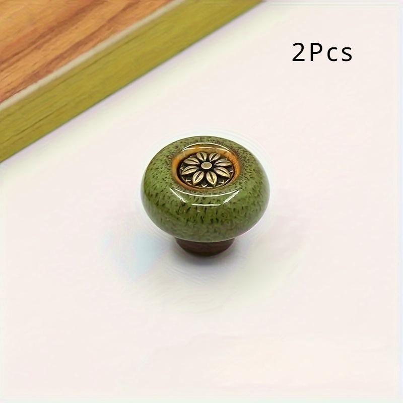 2pcs Colored Ceramic Cabinet Knobs Leopard Glass Round Single Hole Pulls with Mounting Hardware for Closets