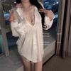 Сексуальное нижнее белье рубашка в стиле бойфренда ледяной шелк сексуальный большой размер чистое кружево атласная одежда для дома