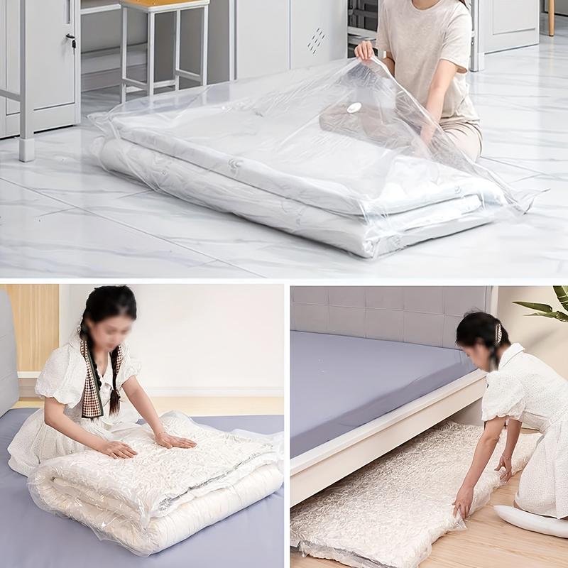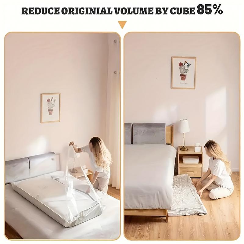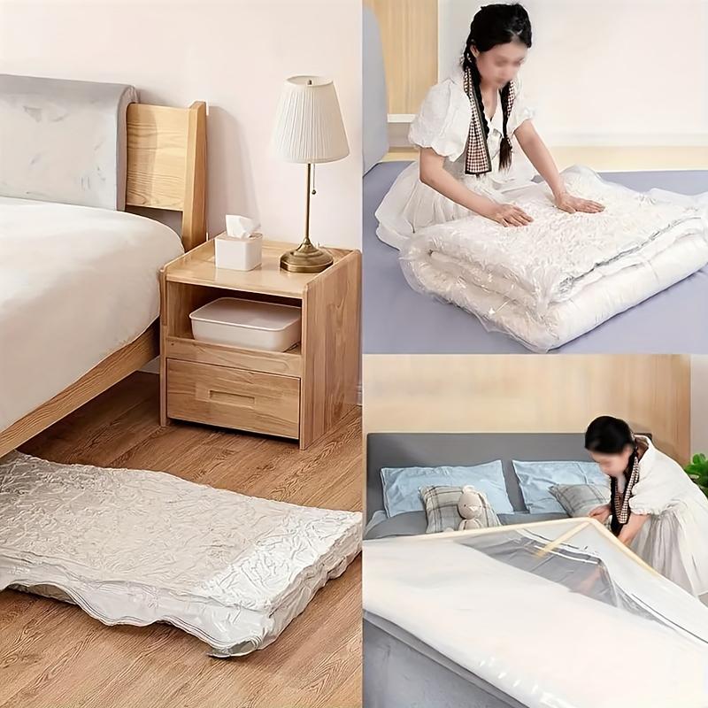 Вакуумные компрессионные мешки для матрасов специально разработаны для хранения крупных бытовых предметов, таких как матрасы, наматрасники и одеяла.. Благодаря вакуумированию и сжатию они значительно уменьшают размер вещей, экономя место для хранения..