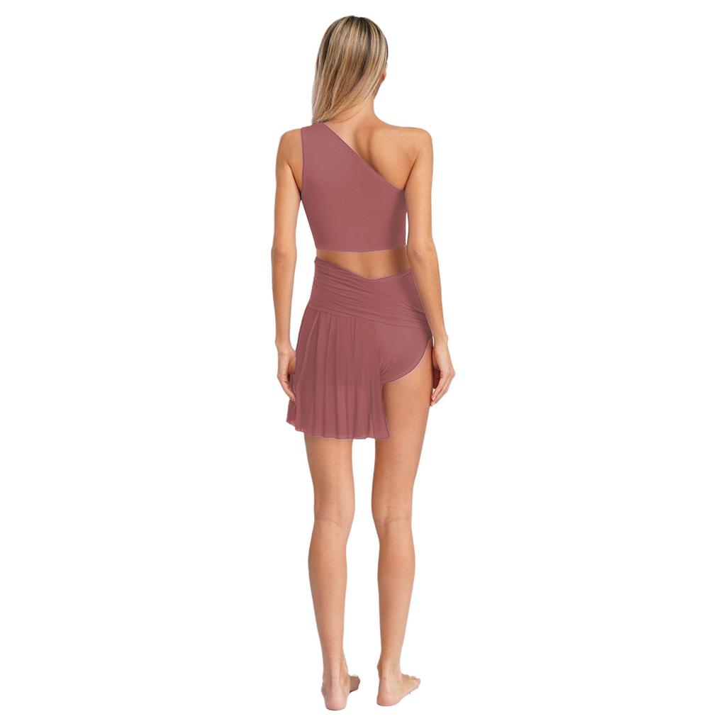 Женский лирический танцевальный топ на одно плечо со стразами, укороченный топ с сетчатыми трусиками-юбкой, комплект танцевальной одежды для выступлений