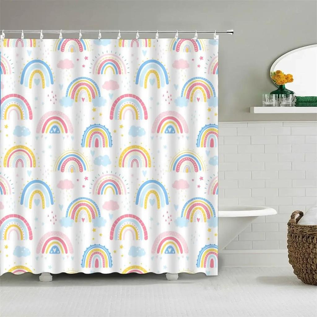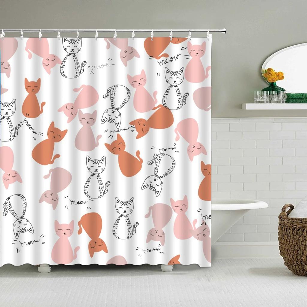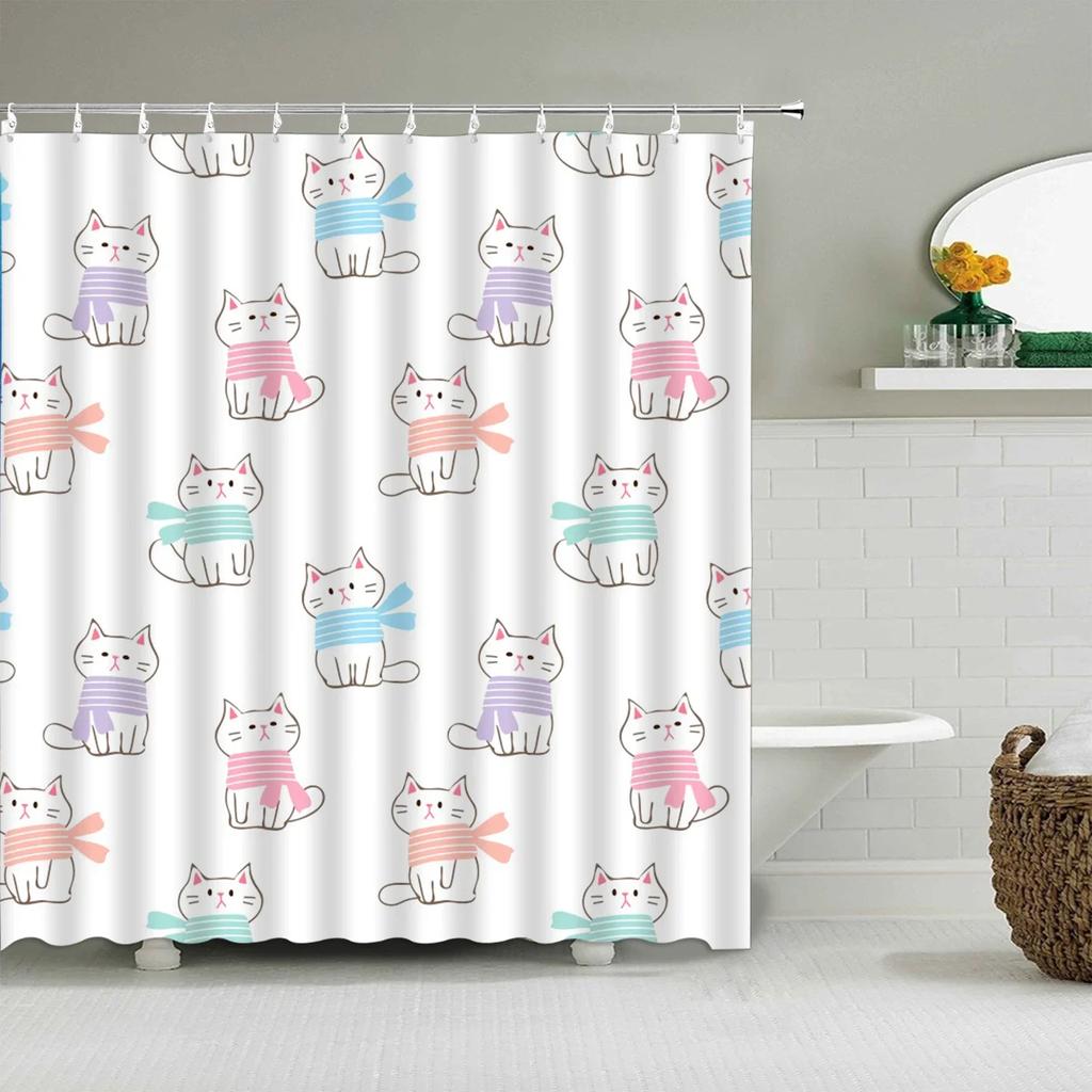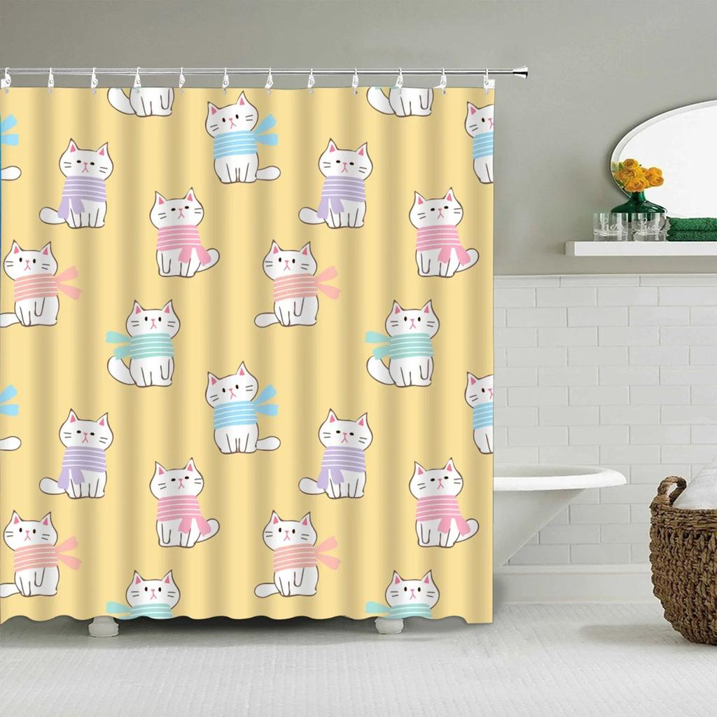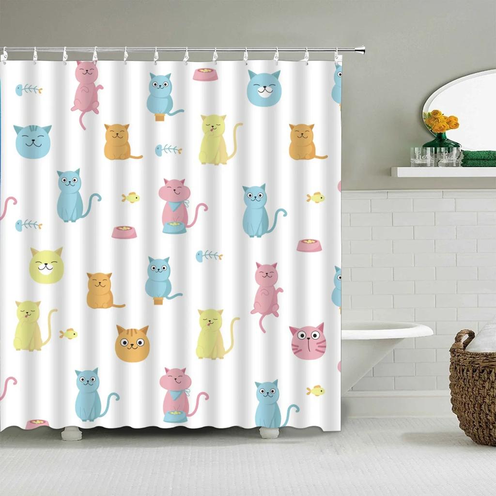 Мультяшная Милая Шторка для Душа, Забавные Животные Кошка Радуга Цветная Бабочка Дети Мальчики Девочки Ванная Комната Ванна Экран Украшение
