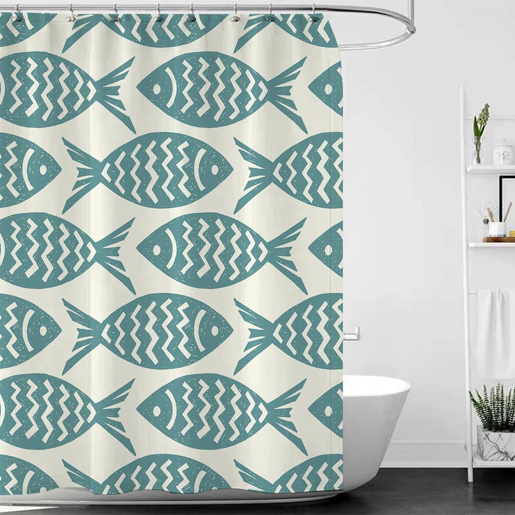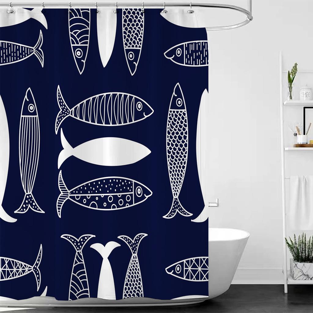 Синяя Рыба Занавеска для Душа Простая Абстрактная Рыба Ориентальная Художественная Белый Фон Водонепроницаемая Ткань Декор для Ванной Комнаты Занавеска