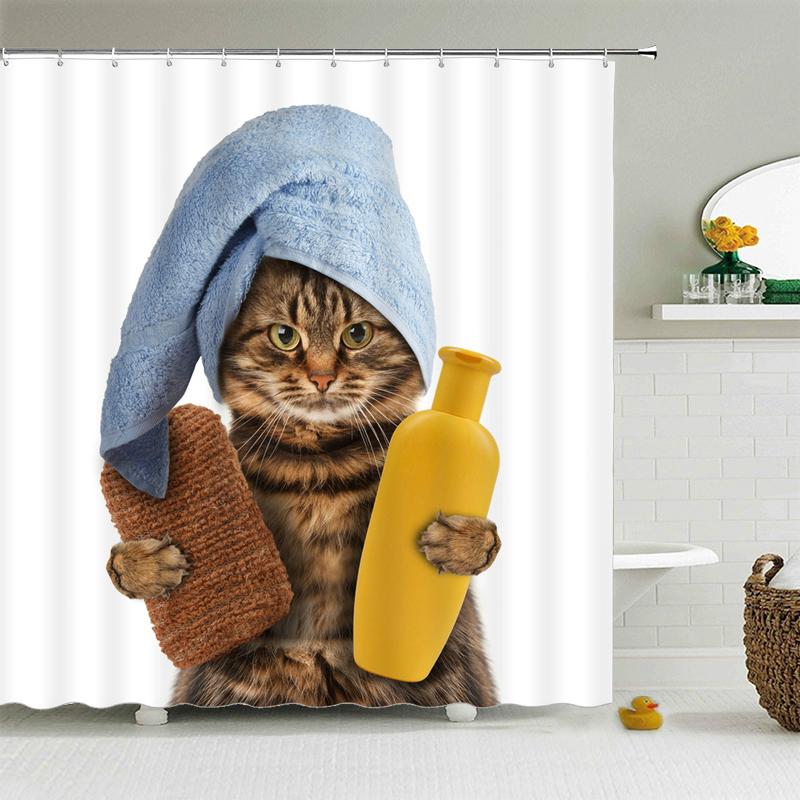 Забавные занавески для душа, занавеска для ванной комнаты с крючками, декор, водонепроницаемая 3d занавеска для кошки и собаки, ванна 180*180 см, креативная индивидуальная занавеска для душа