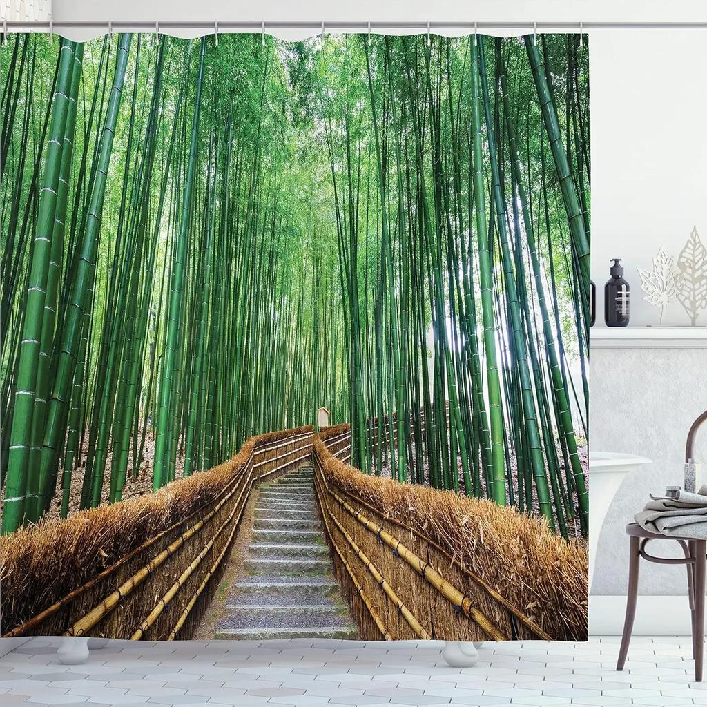 Занавеска для душа Zen Bamboo, Водонепроницаемая ткань со сценами природы для расслабляющего декора ванной комнаты, Создает спокойную атмосферу