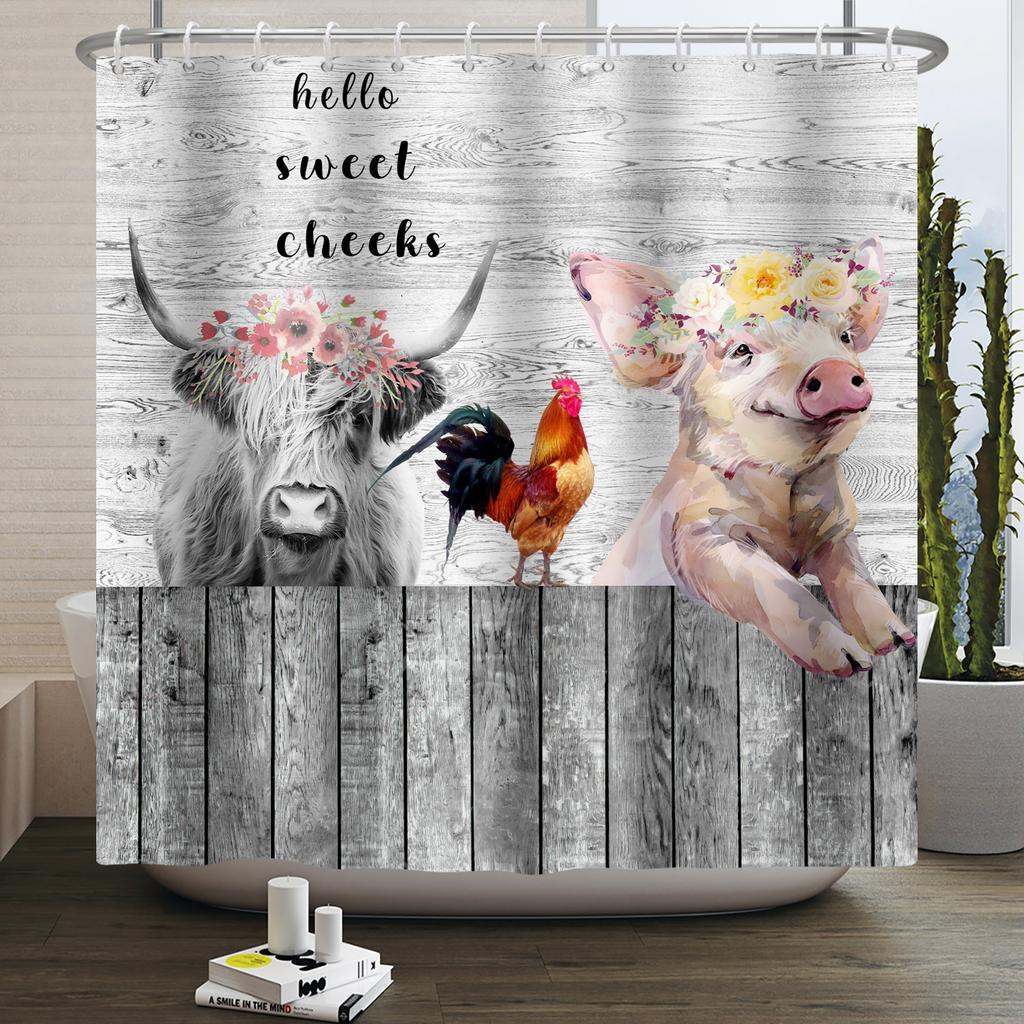 Шторка для душа с фермерскими животными Милая Забавная Корова Курица Свинья Цветок Лошадь Дерево Фермерский дом Амбар Рустикальная Шторка для душа для декора ванной комнаты — купить товар онлайн с бесплатной доставкой по всему миру!