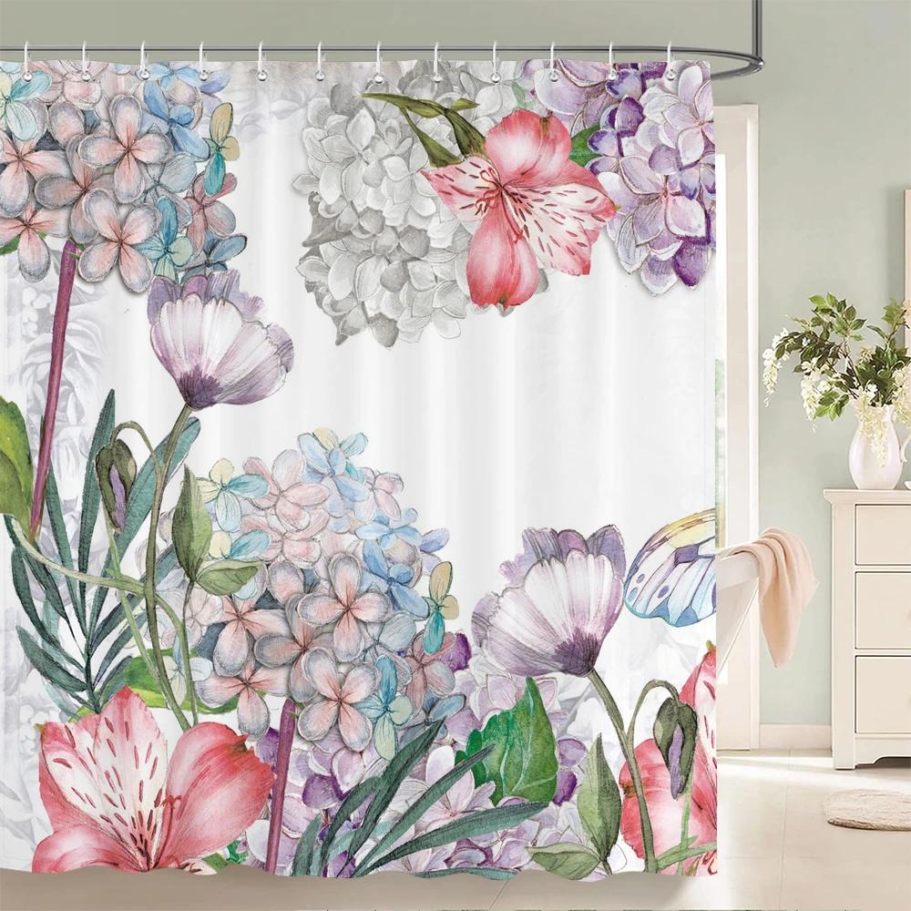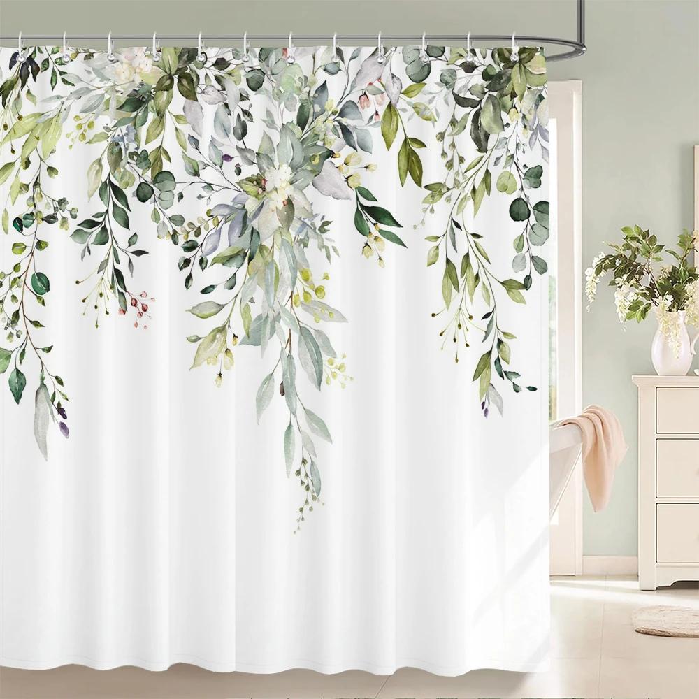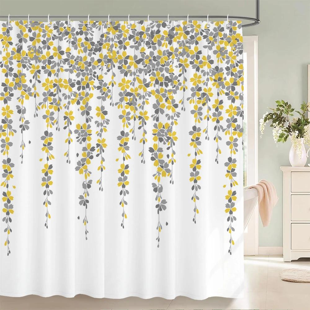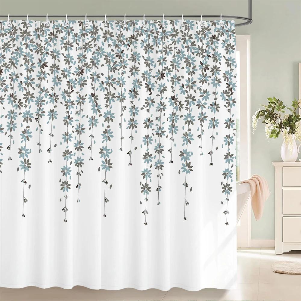 Маленькая свежая цветочная листва Цветы Шторка для душа Ванная комната Водонепроницаемый полиэстер Разные размеры 3D-печать Шторы для ванной душа