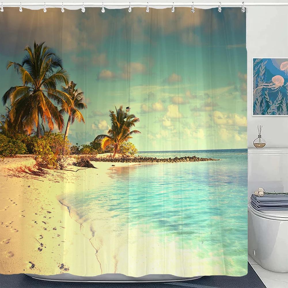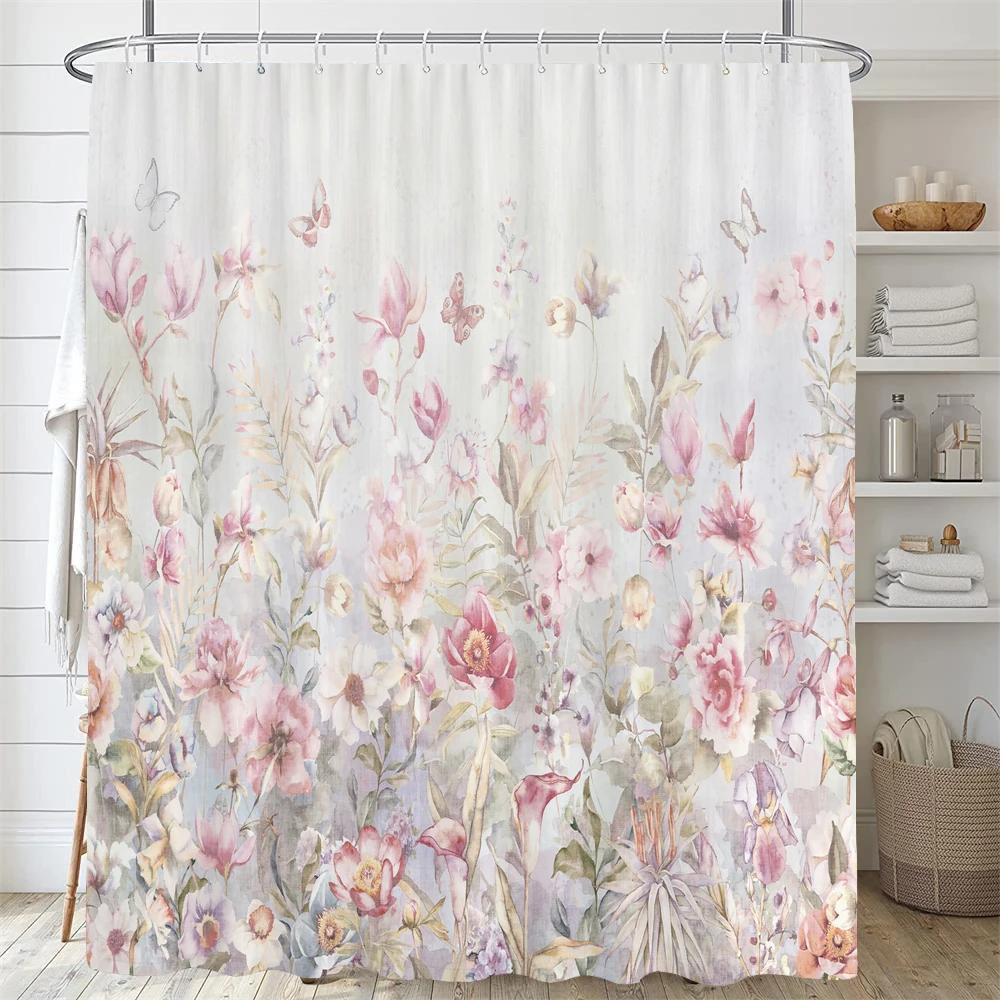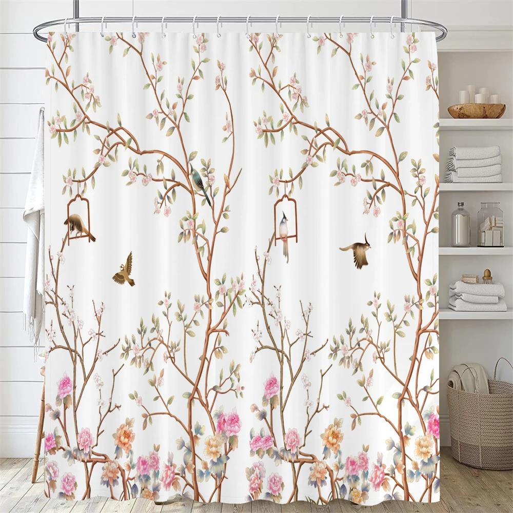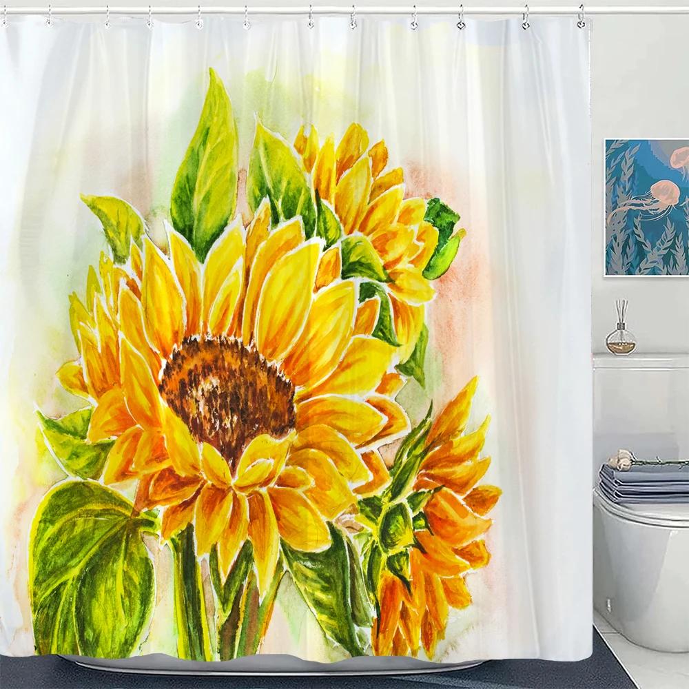 Маленькая свежая цветочная листва Цветы Шторка для душа Ванная комната Водонепроницаемый полиэстер Разные размеры 3D-печать Шторы для ванной душа