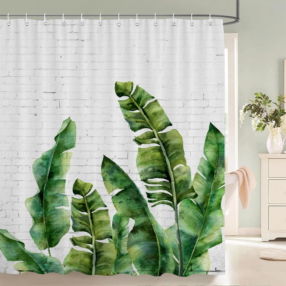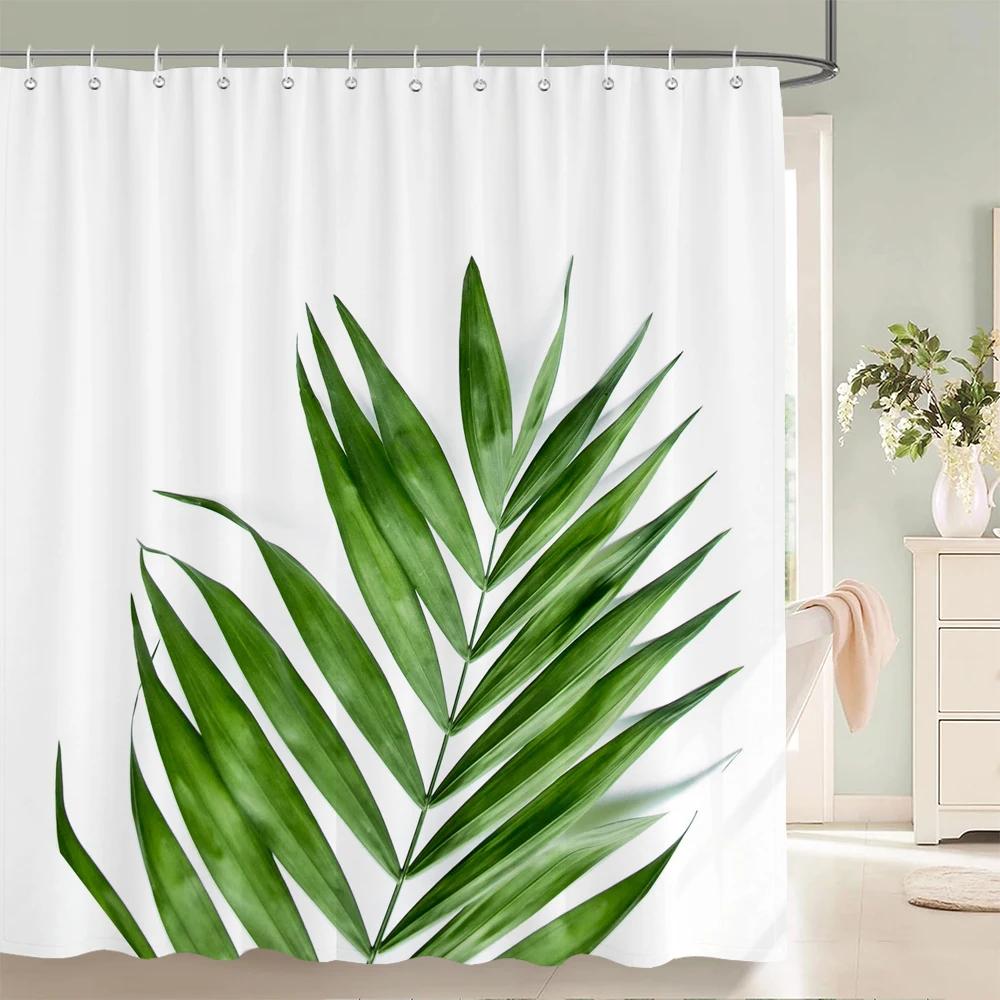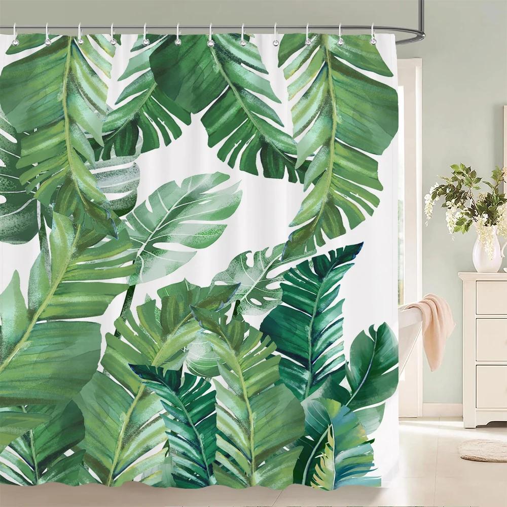 Тропические зеленые листья растений 3D-принт Тканевая шторка для душа полиэстер водонепроницаемая украшение для ванной с крючком занавеска для ванны