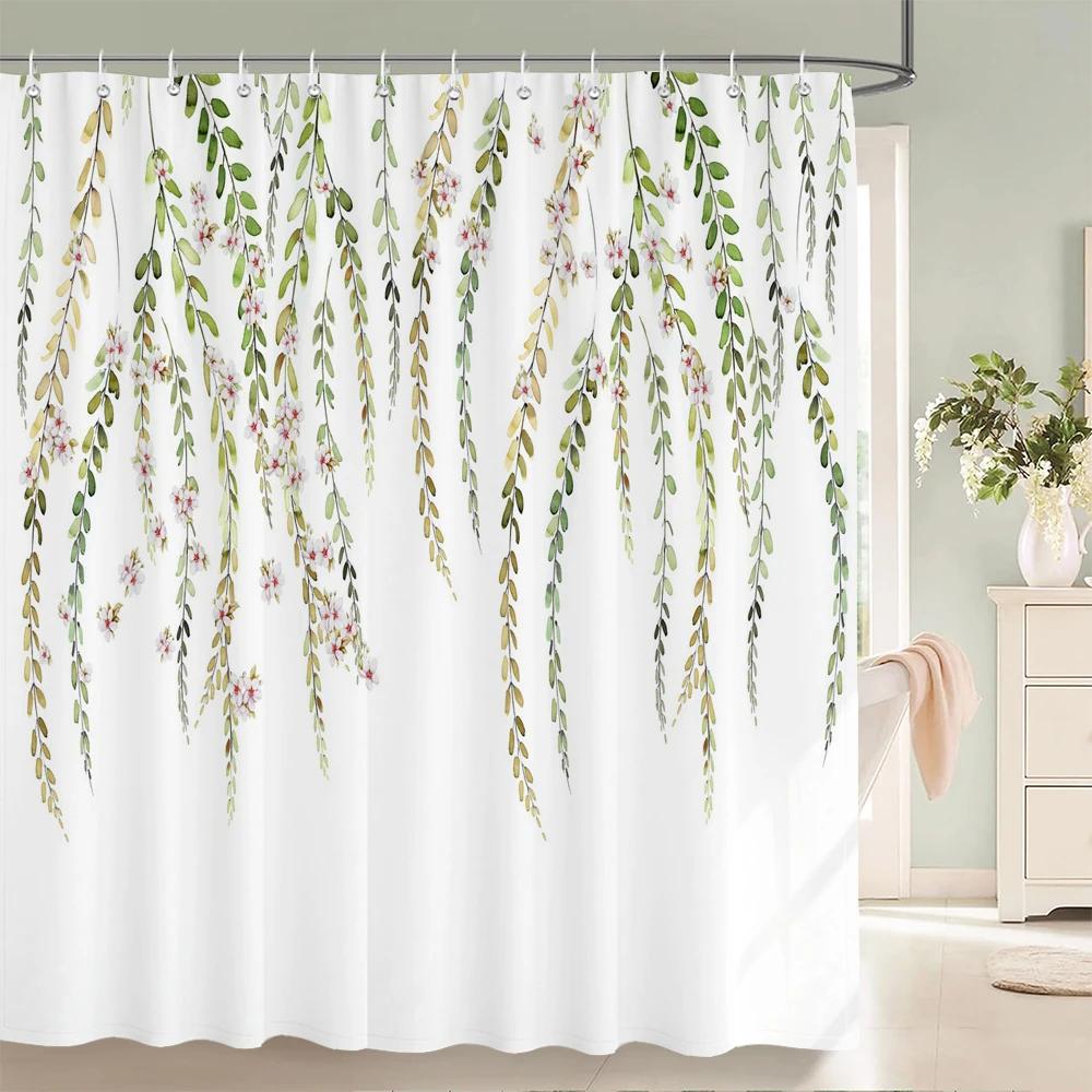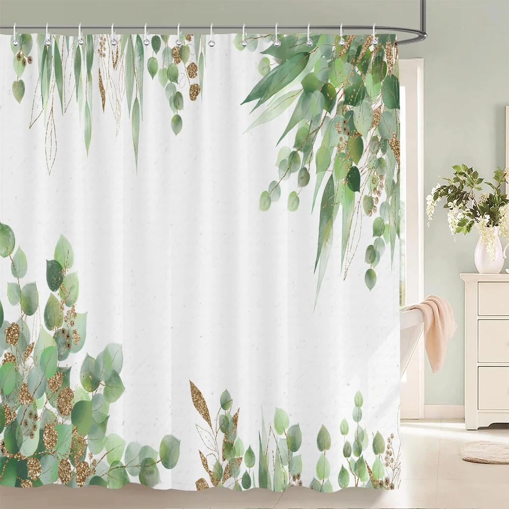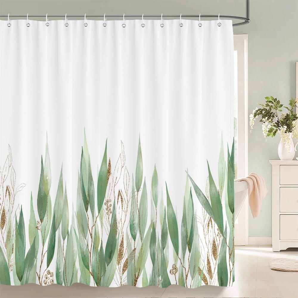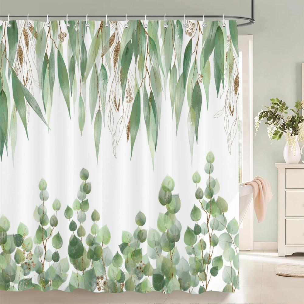 Тропические зеленые листья растений 3D-принт Тканевая шторка для душа полиэстер водонепроницаемая украшение для ванной с крючком занавеска для ванны