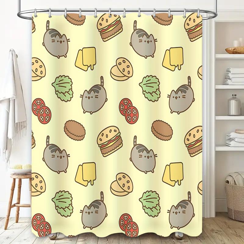 Очаровательная Занавеска для душа с котиком и бургером Водонепроницаемый декор Дети Взрослые Легко чистить Дом Путешествия Подходит для влажного и сухого разделения