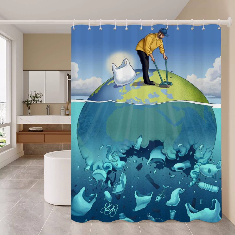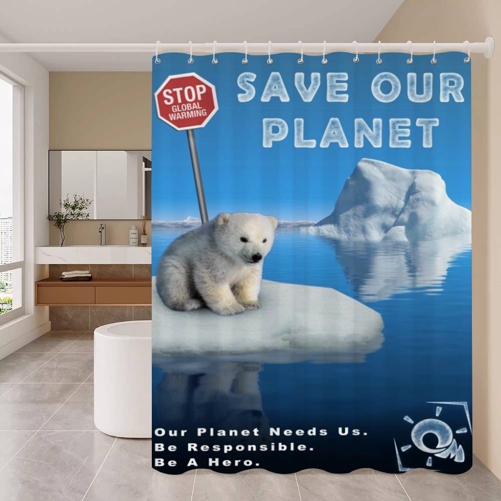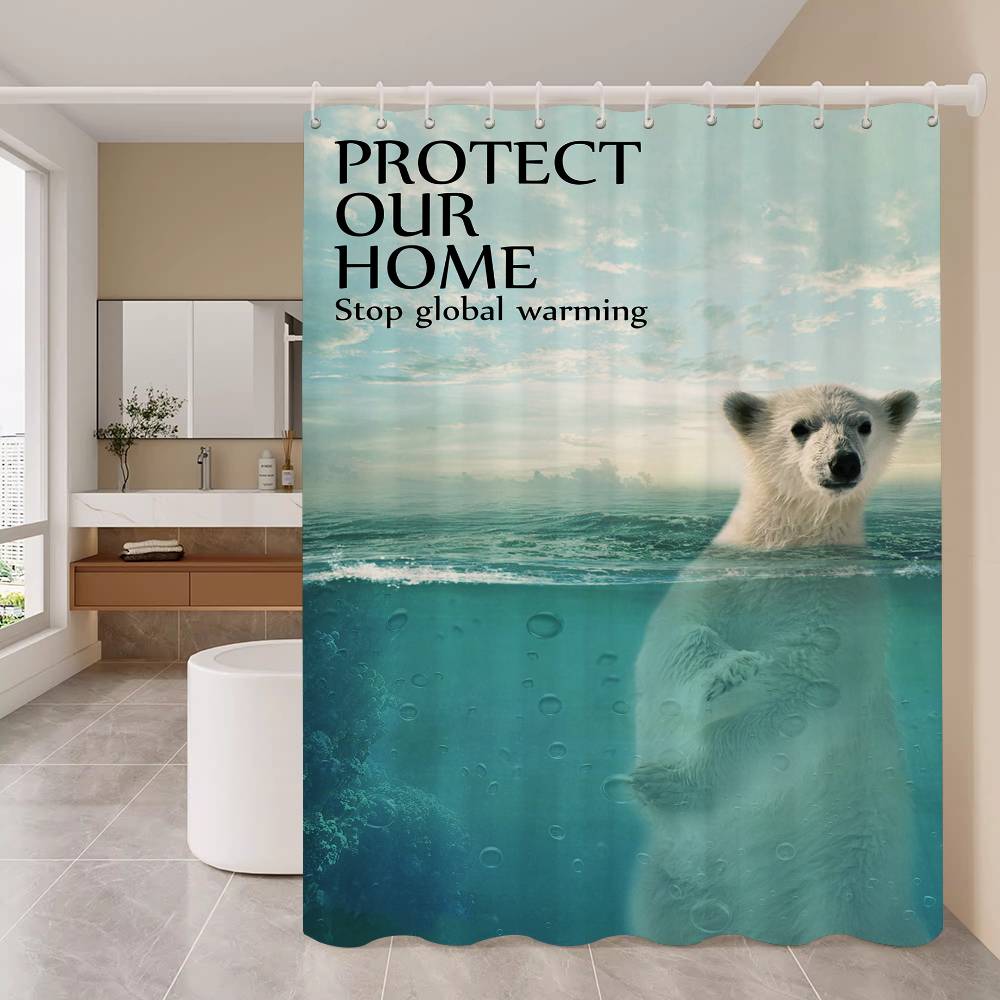 Изменение климата и глобальное потепление Современная простая душевая занавеска Декоративная полиэстеровая занавеска для ванной с крючком