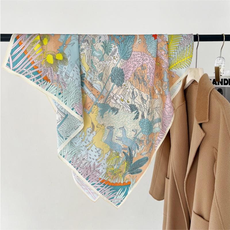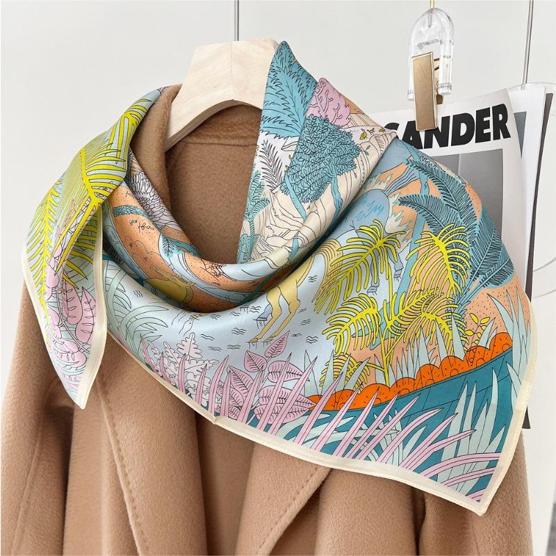 Весенняя новинка: шелковый шарф из атласа и крепа, 90% шелк тутового дерева, тонкий, квадратный, женский, подарок.