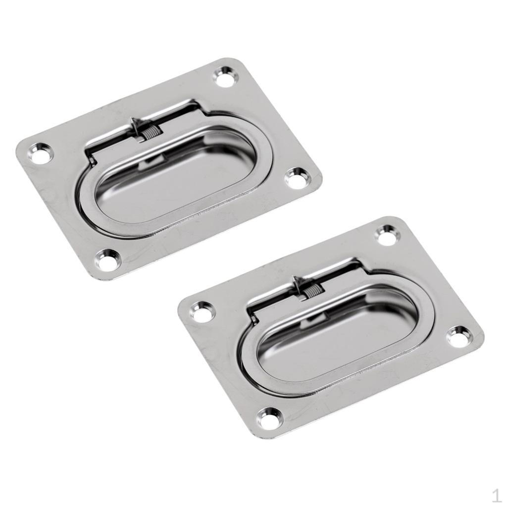 Упаковка из 2 штук 73 x 54 мм Ручка-подъемник люка из нержавеющей стали с пружиной, утопленный фитинг, морская